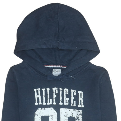 This Tommy Hilfiger Women’s navy blue pullover hoodie is designed for effortless comfort and everyday style. Crafted from a soft and durable blend of 74% cotton and 26% polyester, this hoodie offers a cosy, breathable feel with just the right structure to maintain its fit over time. Featuring the classic “Hilfiger 85” logo graphic printed on the front, it embodies a sporty yet timeless appeal that the brand is known for. The hoodie includes a relaxed fit cut, long sleeves, and ribbed cuffs and hem for added stretch and warmth. The spacious kangaroo pocket provides practicality and a touch of casual charm. Designed with an attached hood for extra comfort and versatility, it’s perfect for layering during cooler months or wearing on its own in transitional weather. The crew neckline sits softly at the collar, maintaining a neat silhouette while ensuring ease of wear. Ideal for everyday casual outings, relaxed weekends, or layering over your gym outfit, this hoodie balances fashion and functionality seamlessly. The deep navy blue tone adds a flattering and wearable neutral to your wardrobe, pairing effortlessly with jeans, joggers, or leggings. Suitable for autumn, spring, and winter seasons, this hoodie carries the premium touch synonymous with Tommy Hilfiger design. Although pre-owned, it remains in very good condition with light general wear and minor lint marks, showing careful previous use. Machine washable for easy care, this classic piece will stay a wardrobe favourite for years. Whether styled for a laid-back look or layered under a jacket, the Tommy Hilfiger pullover hoodie promises both comfort and effortless designer style.
