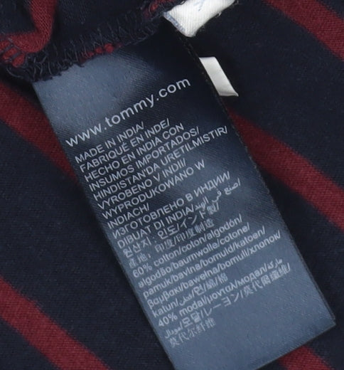 This stylish Tommy Hilfiger dress, crafted from a soft blend of cotton and modal, offers a relaxed and elegant look. The comfortable jersey fabric ensures easy wear, while the eye-catching navy blue striped pattern adds a sophisticated touch. Designed for women, this dress is perfect for casual outings or daytime events. With an adjustable feature for a customized fit, it brings both comfort and style together effortlessly. Its excellent condition means it still retains its original appeal without flaws, making it a great addition to your wardrobe. Ideal for those who appreciate high-quality fashion mixed with a touch of casual elegance, this dress stands out in any collection.