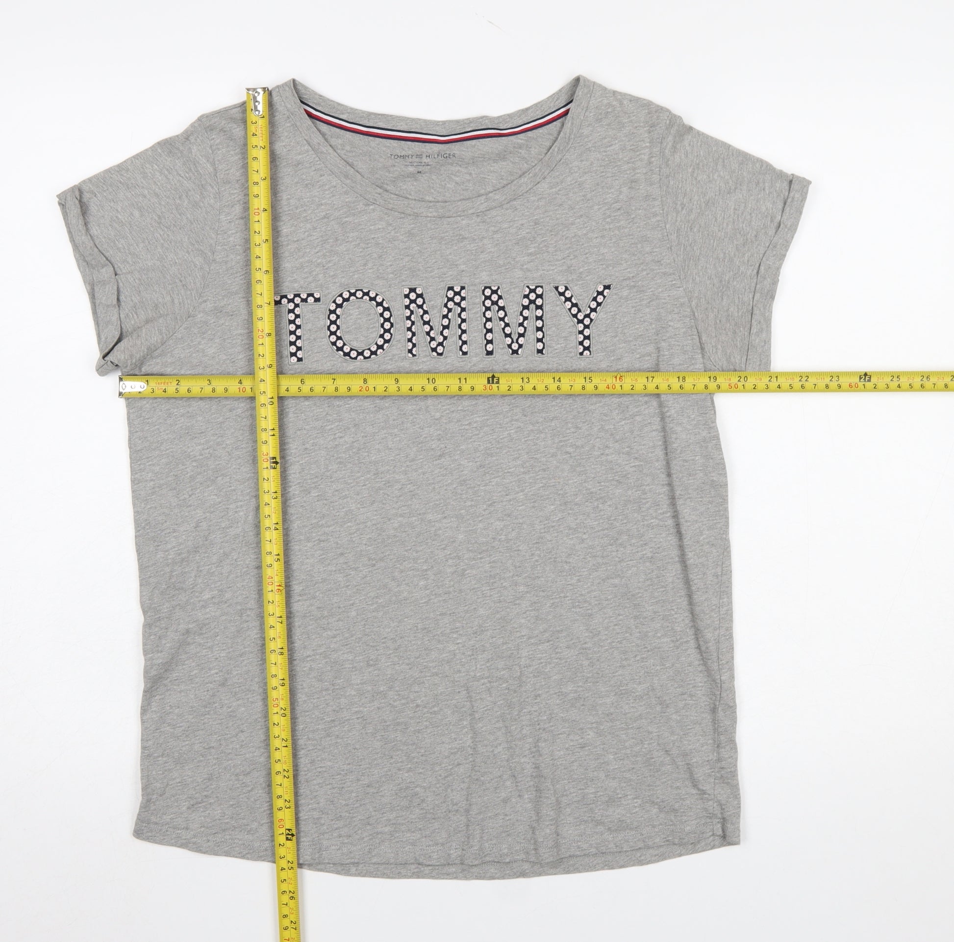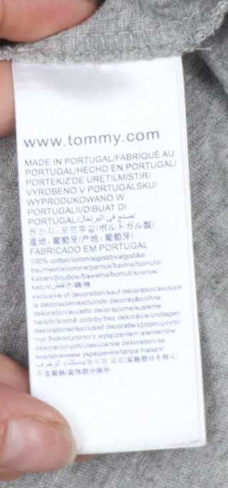 Add a touch of timeless style to your casual wardrobe with this Tommy Hilfiger women's grey T-shirt. Crafted from 100% soft, breathable cotton, this lightweight top offers all-day comfort and an effortlessly stylish look. The simple yet iconic design features 'TOMMY' embroidered across the front, showcasing the classic Tommy Hilfiger aesthetic that combines casual sophistication with a touch of modern flair. Perfect for everyday wear, this medium-sized T-shirt features a regular fit that flatters most body shapes, a crew neckline, and short fitted sleeves for a relaxed yet neat appearance. The jersey fabric ensures a smooth, comfortable feel against the skin, making it ideal for spring, summer, or layering in autumn. Pair it effortlessly with jeans, shorts, or skirts for a versatile and polished look. Designed for women who appreciate quality and understated luxury, this top is a wardrobe essential that brings comfort, style, and brand heritage together. Made in Portugal, it reflects exceptional craftsmanship using pure cotton materials that make it easy to care for and durable wash after wash. Whether worn for a weekend outing, a casual day at work, or simply lounging, this grey Tommy Hilfiger T-shirt delivers both comfort and confidence. The embroidered detailing and instantly recognisable branding make it a stylish choice for those who value premium casual wear. In excellent pre-owned condition, this piece shows minimal signs of wear with no visible marks or damage. It’s a must-have staple piece for anyone looking to upgrade their essentials with a touch of designer quality. Excellent condition and ready to wear, this cotton top offers authentic Tommy Hilfiger appeal at outstanding value. Style it up or down—this is your go-to choice for timeless versatility.