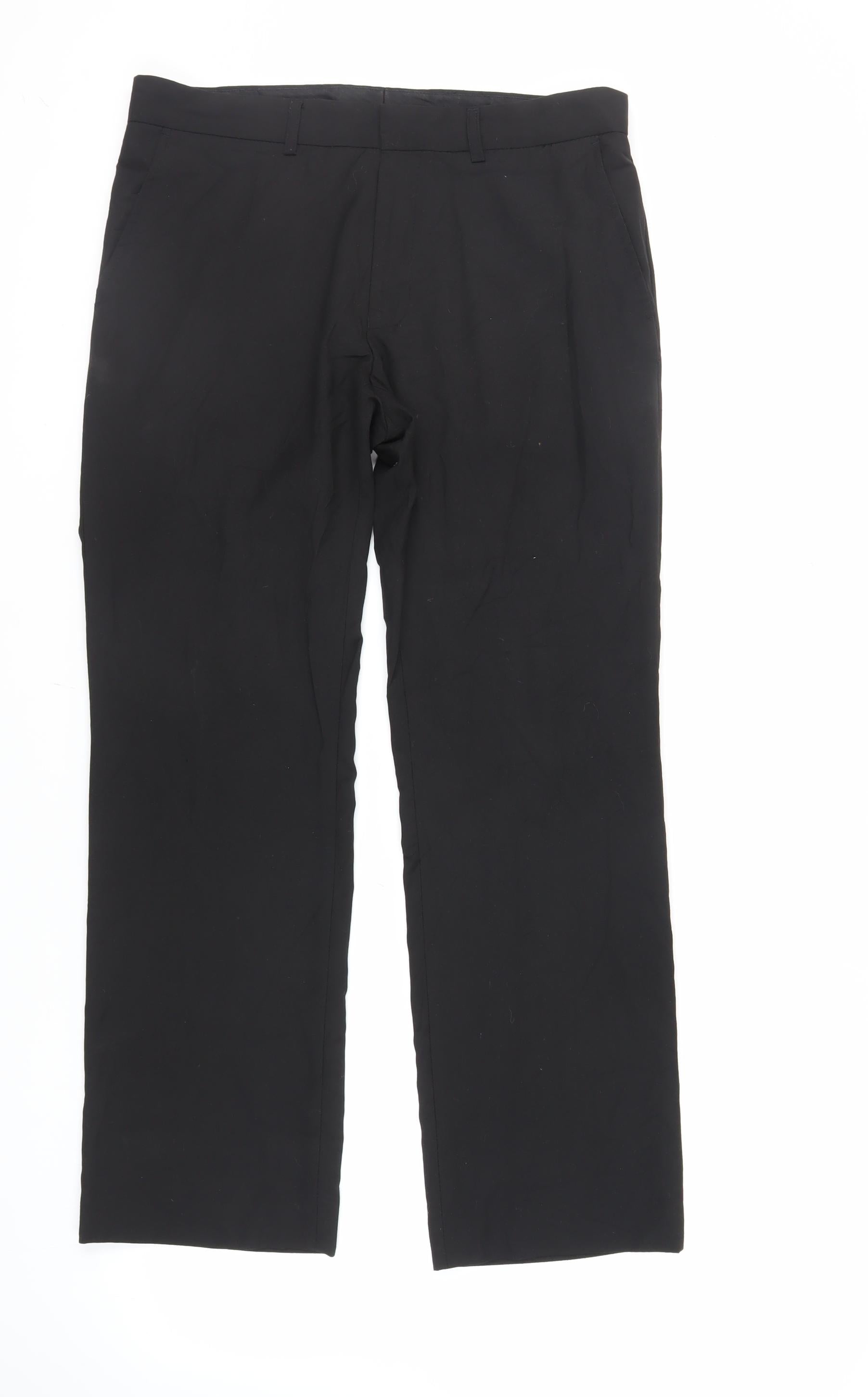 Womens Black Polyester Dress Pants Trousers Size 34 L28 in Regular Zip - Short Length