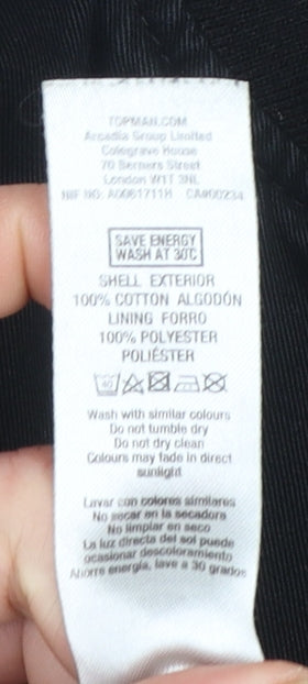 This Topman men’s black bomber jacket is a timeless essential that combines style, comfort, and everyday practicality. Constructed from 100% cotton, the outer shell provides a soft yet durable feel that makes it perfect for light layering through spring and autumn. The short-length bomber cut gives it a classic silhouette, while the ribbed cuffs and hem ensure a secure and flattering fit. It’s fully lined with polyester for added comfort, featuring a smooth finish that makes it easy to wear over shirts or jumpers. The jacket’s simple, sleek design with a stand-up collar and silver full-zip closure adds an urban edge that suits smart-casual or relaxed outfits equally well. Designed with practicality in mind, it features side pockets for everyday convenience. The versatile black colour allows effortless coordination with jeans, chinos, or joggers, making it a core wardrobe staple year-round. While the jacket shows some light white marks on the front, it remains in very good pre-owned condition, with plenty of wear left. The material ensures breathability, ideal for transitional weather or casual outings. Whether layered for cooler spring evenings or worn open over a T-shirt, this Topman bomber jacket embodies casual sophistication and easy everyday style. Perfect for men who appreciate modern wardrobe basics with a minimalist finish, it offers a great value option for those seeking durable quality and timeless appeal. With its versatile design and comfortable fit, this jacket would make a great addition to any collection of classic menswear staples.