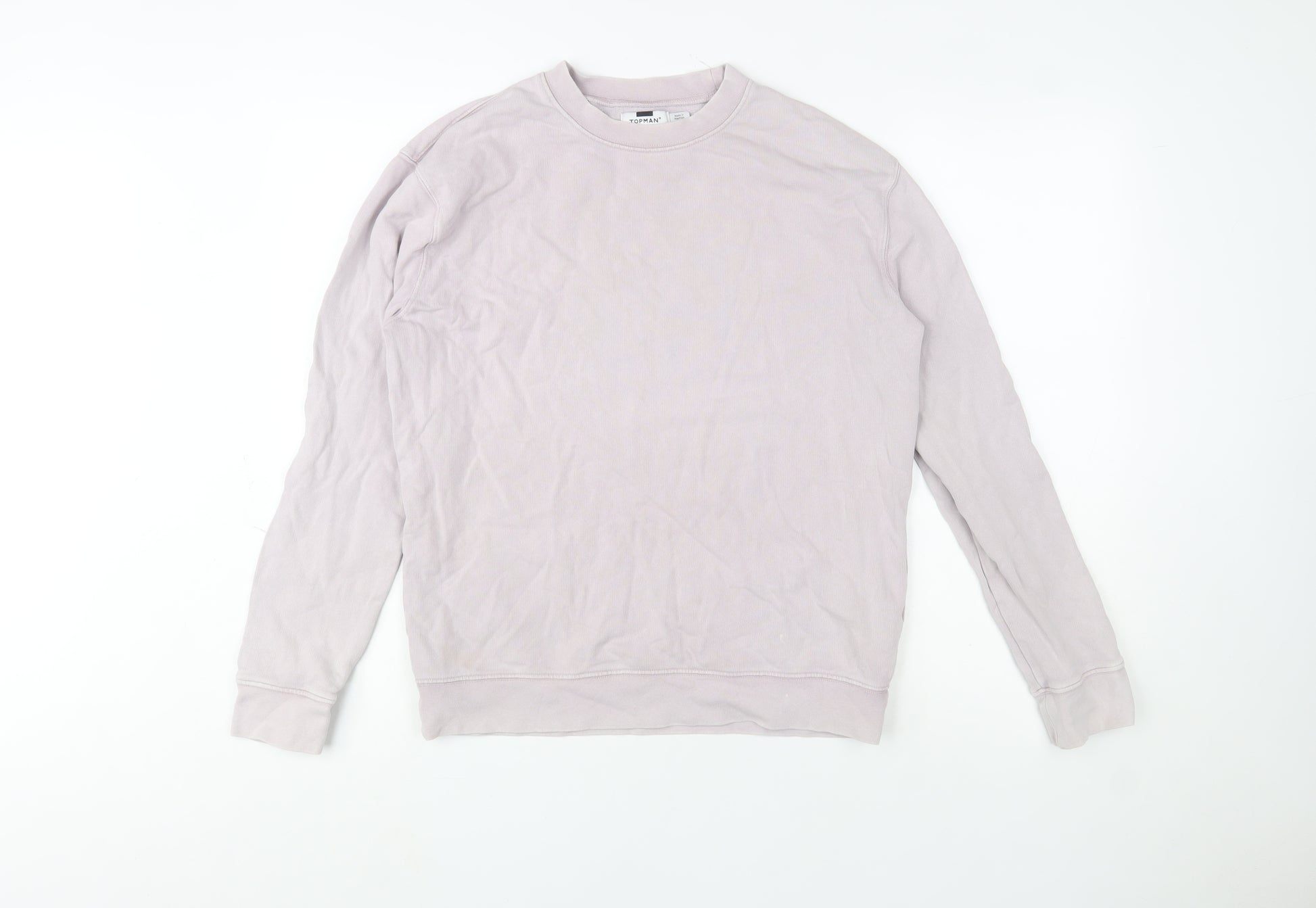 Elevate your casual wardrobe with this men’s beige crew neck sweatshirt from Topman. Crafted for everyday comfort and understated style, this pullover piece features a minimalist design that’s easy to pair with anything from jeans to chinos. Made primarily from soft jersey cotton with a hint of elastane for added flexibility, it ensures breathable comfort and a natural fit. The lightweight construction makes it ideal for layering across seasons, keeping you warm in autumn and winter while remaining wearable during cool spring days. Designed for men who appreciate simple, high-quality essentials, this Topman sweatshirt embodies a clean and modern aesthetic. The crew neckline and ribbed cuffs add a touch of structure, while the smooth beige tone offers versatile styling options — perfect for a refined casual or smart-relaxed look. Whether you’re lounging at home, heading out for a casual meet-up, or layering up for cooler days, this sweatshirt carries effortless appeal. Produced in Mauritius, the garment’s cotton-rich composition reflects Topman’s commitment to quality everyday wear. The sweatshirt delivers a regular fit that flatters a variety of body shapes and provides comfort without compromising on style. The neutral beige hue pairs seamlessly with denim or joggers, while its soft jersey fabric ensures it feels gentle against the skin. In excellent used condition, this sweatshirt shows only minimal signs of previous wear such as light creasing from storage but remains in very good overall shape. With its balance of comfort and timeless simplicity, this Topman beige crew neck sweatshirt is an excellent choice for men seeking versatile layering that blends function and fashion. Great for daily wear, weekend outings, or adding an effortlessly classic item to your casual rotation.