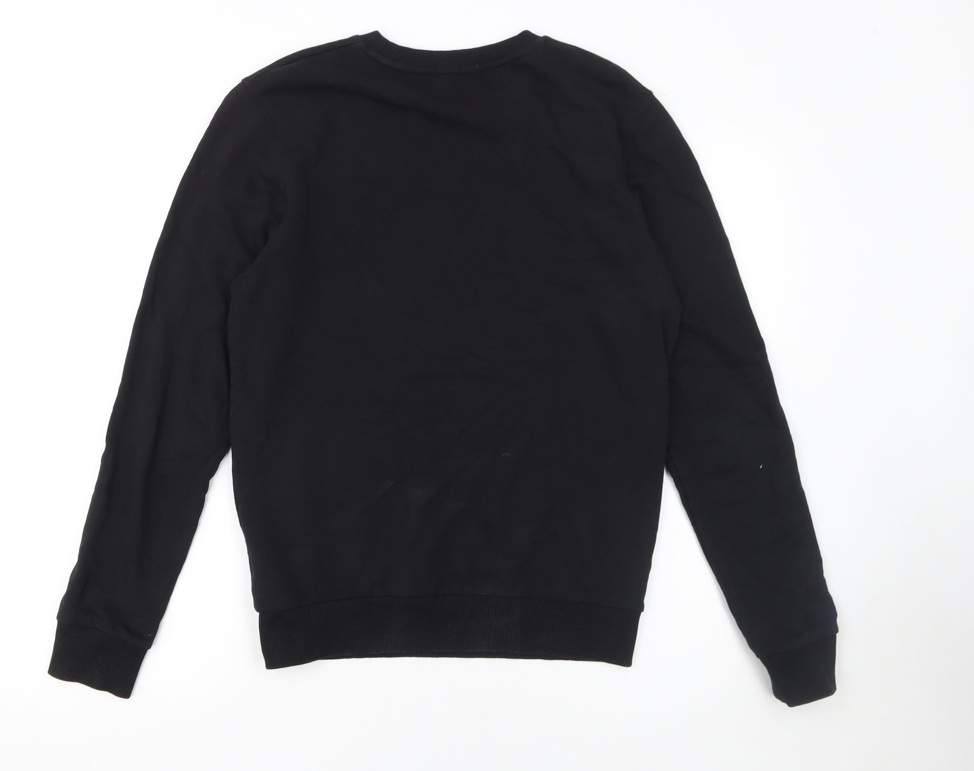 This Topman men’s black Malmö sweatshirt is a stylish and versatile addition to any casual wardrobe. Crafted from 100% cotton jersey material, it offers a comfortable and breathable fit ideal for everyday wear. The pullover design and classic crew neck give it a timeless silhouette, while the bold white ‘MALMÖ’ city logo across the chest adds a distinctive urban touch that stands out against the deep black fabric. Designed for a regular fit, this sweatshirt is lightweight yet warm enough for autumn, winter, and spring layering. The long sleeves with ribbed cuffs, hem, and neckline ensure comfort and resilience, keeping its shape through regular wear. Its simple yet contemporary graphic style makes it an excellent choice for casual outings, city walks, or evening gatherings. As part of Topman’s modern menswear range, this sweatshirt combines classic comfort with bold streetwear flair. With some minor light marks on the lower front that do not affect wear, it remains in very good pre-owned condition. It pairs effortlessly with jeans, joggers, or chinos, making it ideal for men who appreciate both comfort and style. Machine washable for easy care, this cotton jumper is practical and durable, offering lasting softness against the skin. Whether worn as a statement piece or layered under a jacket, this Malmö sweatshirt captures that laid-back Scandinavian-inspired cool. A perfect choice for those who appreciate an easy-wearing, graphic-rich design that embodies confidence and simplicity in one piece.
