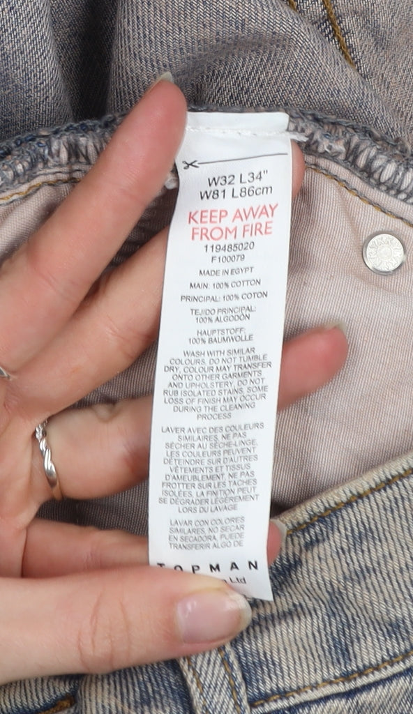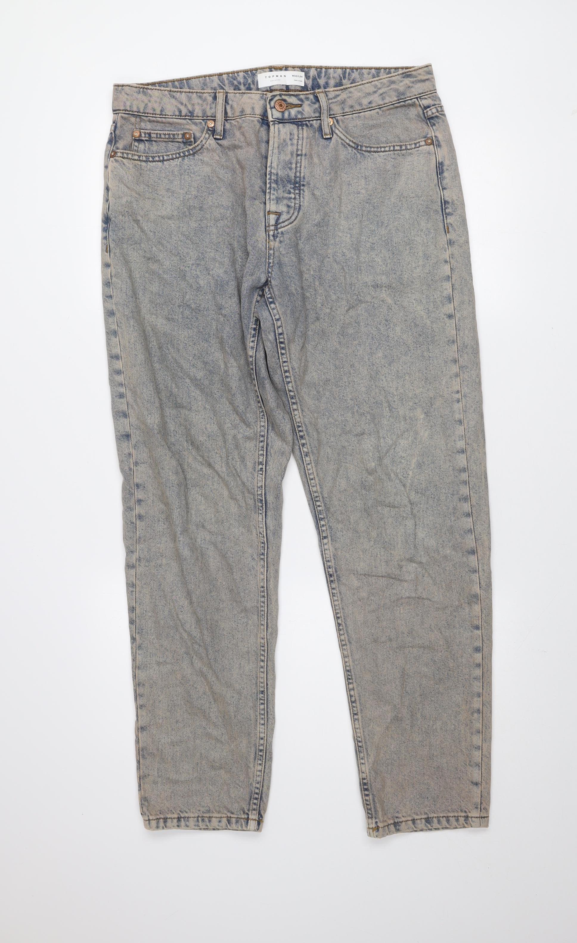 These Topman men’s jeans perfectly capture the effortlessly stylish aesthetic of casual yet refined denim. Crafted from 100% cotton denim, the jeans feature a comfortable relaxed fit that provides ease of movement without compromising on a clean, straight silhouette. The acid wash blue colour gives the jeans a distinctive faded tone that works well for laid-back everyday wear, while the mid-rise waist offers a traditional profile ideal for pairing with both shirts and t-shirts. Designed with a classic 5-pocket structure, a zip and button fly fastening, and sturdy topstitching, they combine practicality and vintage-inspired charm. These jeans are machine washable and easy to care for, making them a versatile addition to any wardrobe. Suitable for year-round wear, the cotton material ensures breathability in the warmer months and comfort during cooler seasons. There is minor wear visible on the fabric, reflecting gentle use, but overall the jeans remain in very good condition with no noticeable damage. Perfect for dressing casually or styling up with layered outerwear, this pair delivers timeless appeal and everyday versatility. Ideal for men who appreciate relaxed silhouettes and durable, well-structured denim.