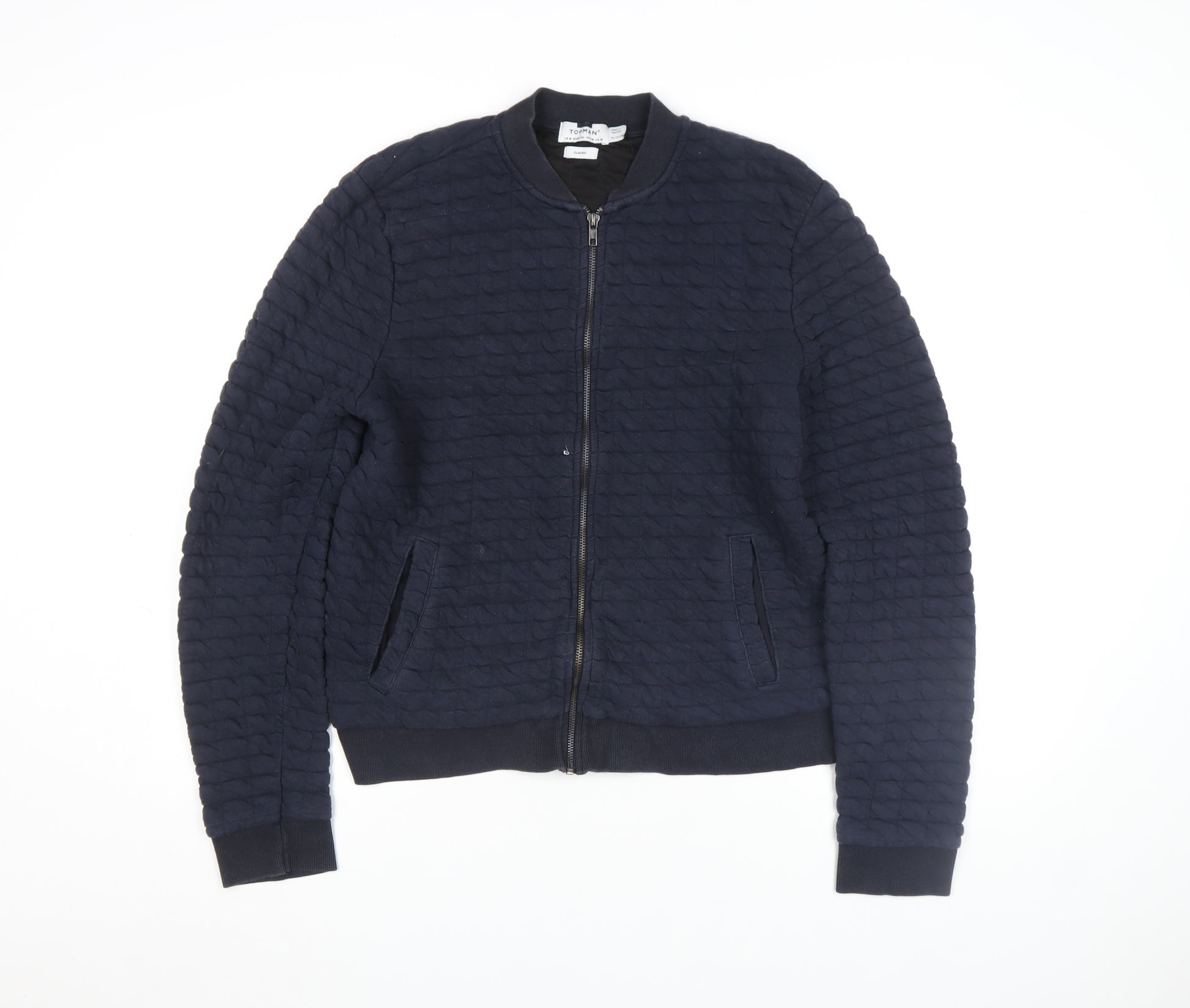 Topman Men's Blue Cotton Bomber Jacket Size M Regular Fit Casual Zip