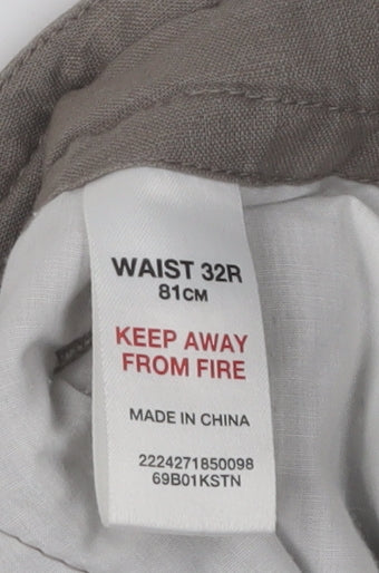 Men's Beige Linen Trousers Size 32 Regular Fit