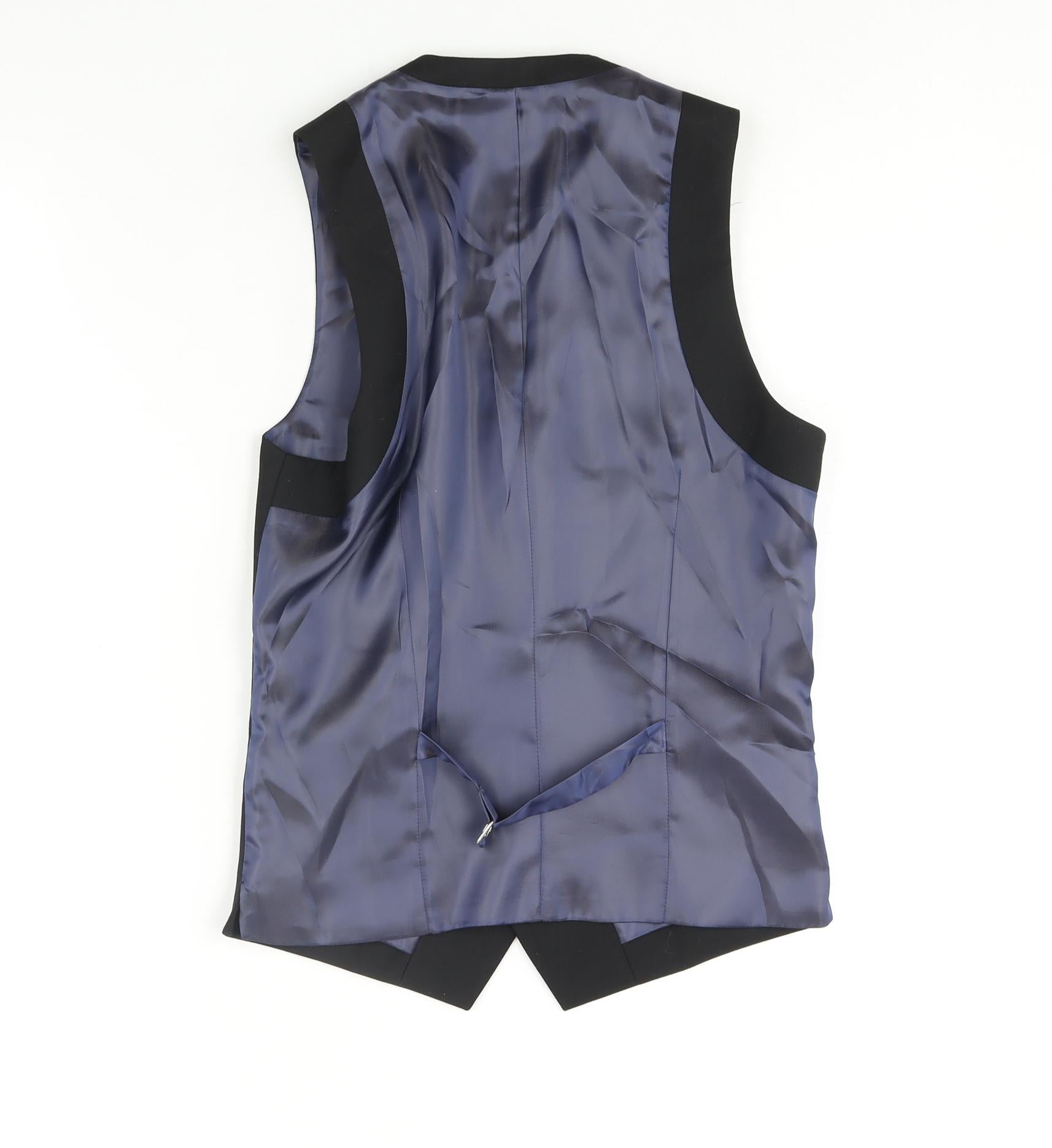 Mens Black Polyester Jacket Suit Waistcoat Size 34 Regular