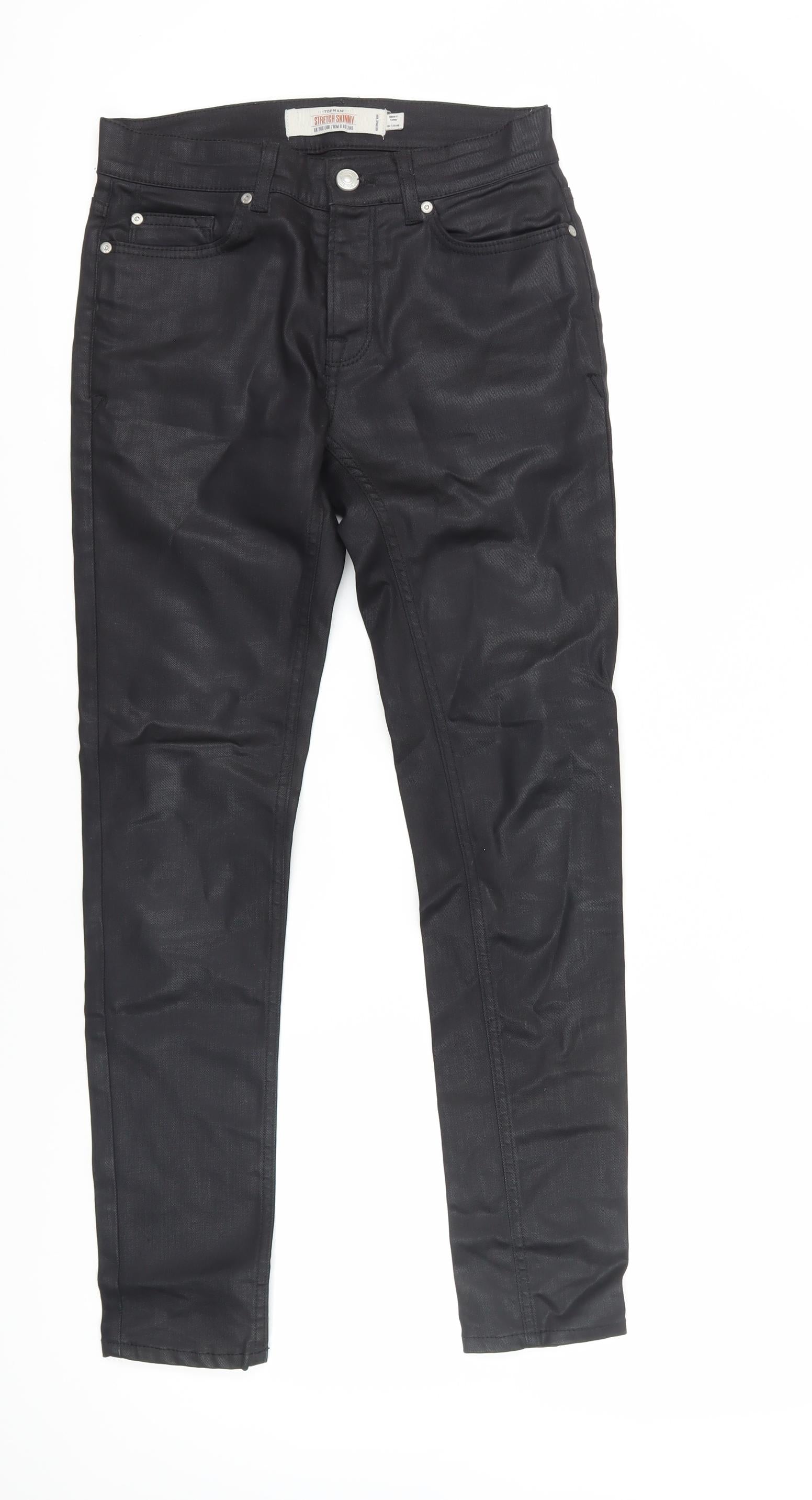 Upgrade your wardrobe with these stylish Topman men's skinny trousers, a must-have for fashion-forward individuals. Crafted from a premium blend of 98% cotton and 2% elastane, these trousers offer both comfort and stretch, ensuring a perfect fit for any casual occasion. The sleek black colour adds an element of sophistication, making them a versatile choice for any outfit. Designed with a low rise and flat front, these trousers maintain a modern, streamlined silhouette. The skinny leg style enhances your look with a trendy edge, while the 5-pocket design adds functionality. The zip closure ensures ease of wear, perfect for everyday use. These trousers are machine washable, offering easy garment care. Despite being pre-loved, they remain in excellent condition, with minimal wear visible. Whether you're heading to a casual outing or looking to enhance your daily style, these trousers are an ideal choice. Grab them now and experience the perfect blend of fashion and comfort.