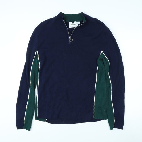 Elevate your casual wardrobe with this stylish Topman pullover jumper in a striking blue hue. Crafted for men, this jumper features a high neck and long sleeves, keeping you warm without compromising on style. The 1/4 zip detail adds a modern touch, making it versatile for various occasions. Perfect for autumn and winter seasons, the knit fabric ensures comfort and durability, ideal for layering or standalone wear. Whether you're heading out for a casual day or a relaxed evening, this jumper provides an effortless style statement. Pair it with jeans or chinos for a complete look.