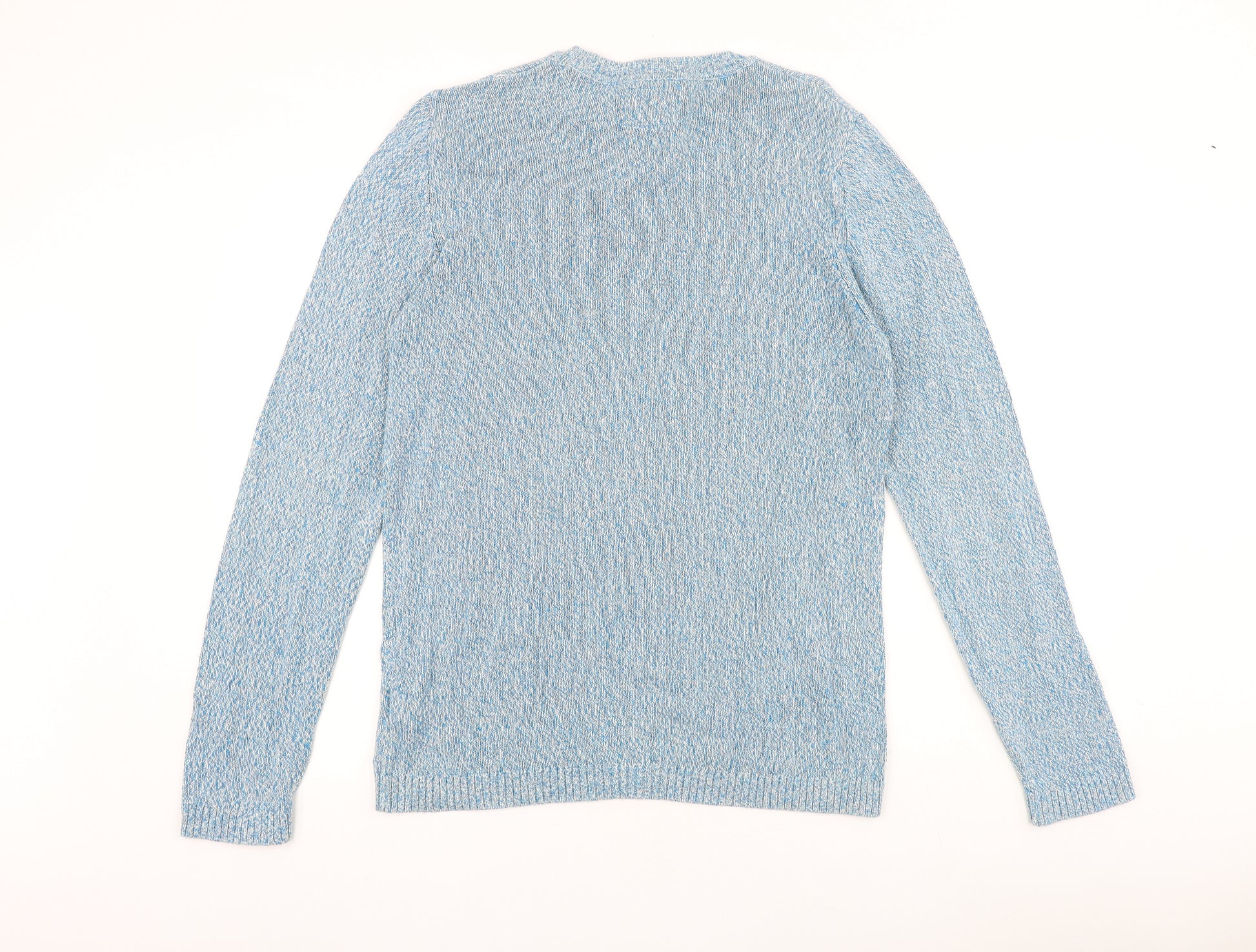 Mens Blue Round Neck Cotton Pullover Jumper Size M Long Sleeve