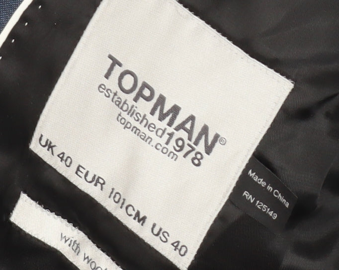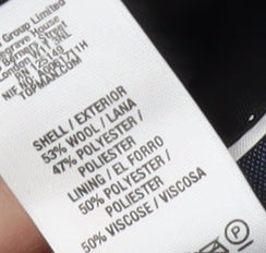 Elevate your formal wardrobe with this exquisite Topman blazer. Expertly tailored in a striking blue hue, this single-breasted jacket is designed to complement any formal ensemble. Made from a blend of 53% wool and 47% polyester, the blazer promises durability while ensuring a comfortable fit that keeps you at ease all day long. The garment offers a regular length fit, perfectly aligning with contemporary fashion standards. Inside, the lining is crafted from polyester and viscose/rayon, adding a touch of luxury to the garment. This size 40 jacket is suitable for gentlemen looking for a refined and polished style. The notch lapel style and two-button front closure provide a sleek and sophisticated appearance, suitable for formal occasions. Moreover, the double-vented design ensures maximum comfort and mobility. The four-button detailing on the sleeves adds a classic touch, while the double-vented style enhances breathability. Ideal for the autumn and winter months, this blazer requires dry cleaning only, guaranteeing longevity and maintaining its pristine condition. Tailored for regular size type, this blazer is your perfect choice for weddings, business meetings, or any formal event. The impeccable craftsmanship and timeless design make it a valuable addition to any fashion-forward wardrobe. Transform your look instantly with this elegant Topman blazer, a must-have for any style-conscious individual aiming to leave a lasting impression.