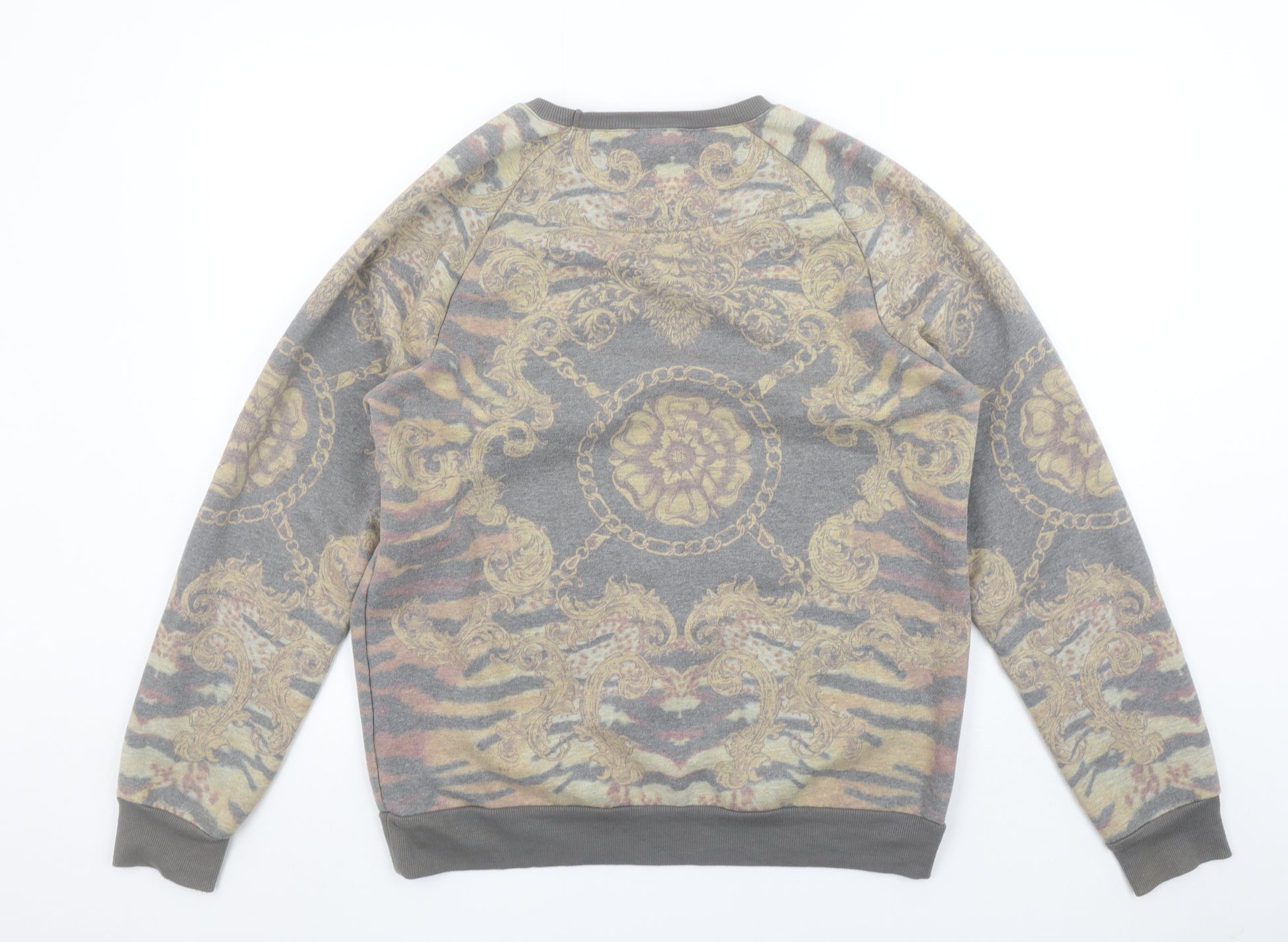 Men's Grey Baroque Print Crew Neck Sweatshirt Size M