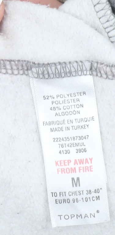 Elevate your casual wardrobe with this striking Topman men's sweatshirt in size M. Expertly crafted from a soft and comfortable blend of 52% polyester and 48% cotton, this pullover provides a perfect balance of warmth and breathability for everyday wear. Designed in an eye-catching grey base adorned with intricate baroque-inspired patterns and subtle tiger-style undertones, it effortlessly merges classic and contemporary aesthetics. The crew neckline and ribbed cuffs ensure a snug fit that retains its shape, while the lightweight jersey fabric makes it ideal for layering across multiple seasons. Perfect for autumn, spring, and winter, this Topman sweatshirt offers timeless streetwear appeal that transitions seamlessly from casual outings to laid-back evenings. The all-over graphic print accent adds personality without being overpowering, while its soft interior ensures comfort against the skin. With its regular fit and relaxed silhouette, it provides effortless style that complements jeans, joggers, or chinos alike. Crafted in Turkey with precision, this quality piece is built to last. Despite being pre-owned, it remains in excellent condition with no visible signs of wear, stains, or fabric damage. Machine washable for easy care, it’s a convenient yet stylish option for the modern man who values both fashion and comfort. Whether you're refreshing your wardrobe with a unique patterned sweatshirt or seeking a standout piece for casual ensembles, this Topman design offers the perfect fusion of softness, durability, and individual style. Add a touch of sophistication to your off-duty looks with this versatile grey baroque print sweatshirt — a comfortable essential that doesn’t compromise on character or quality.