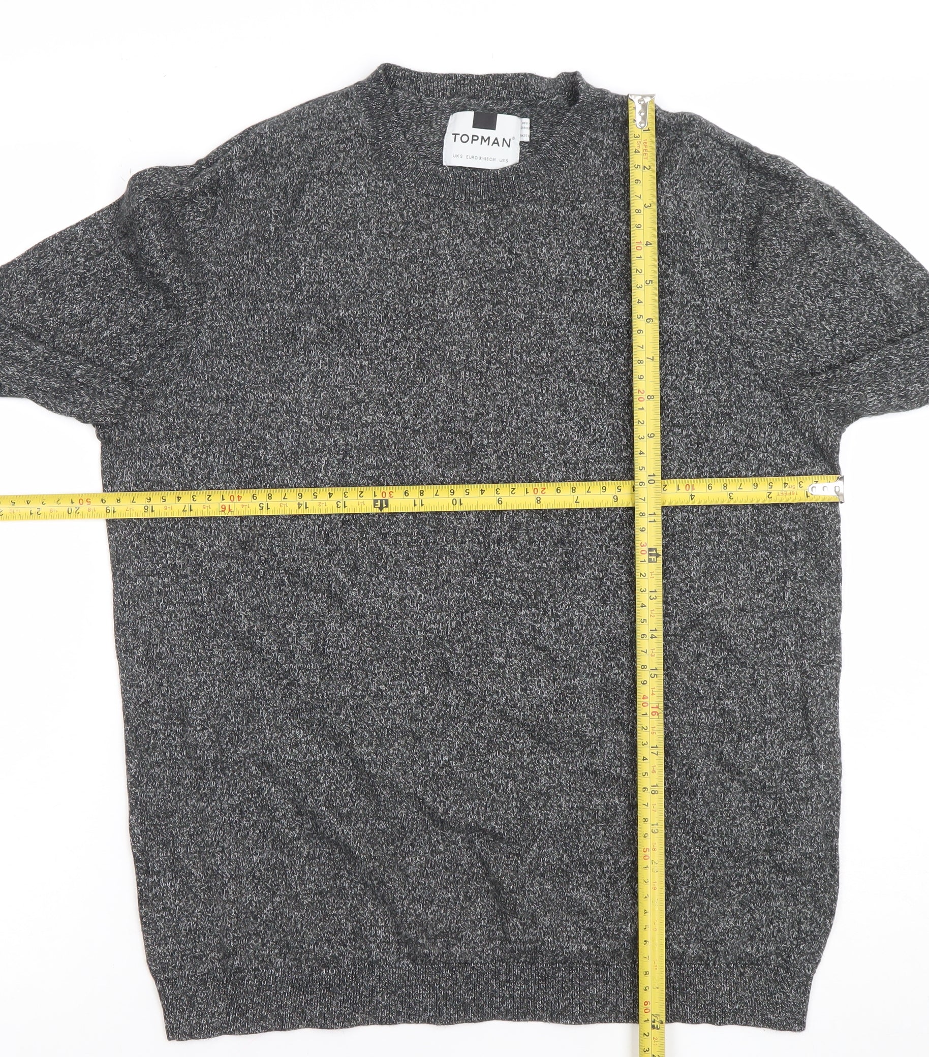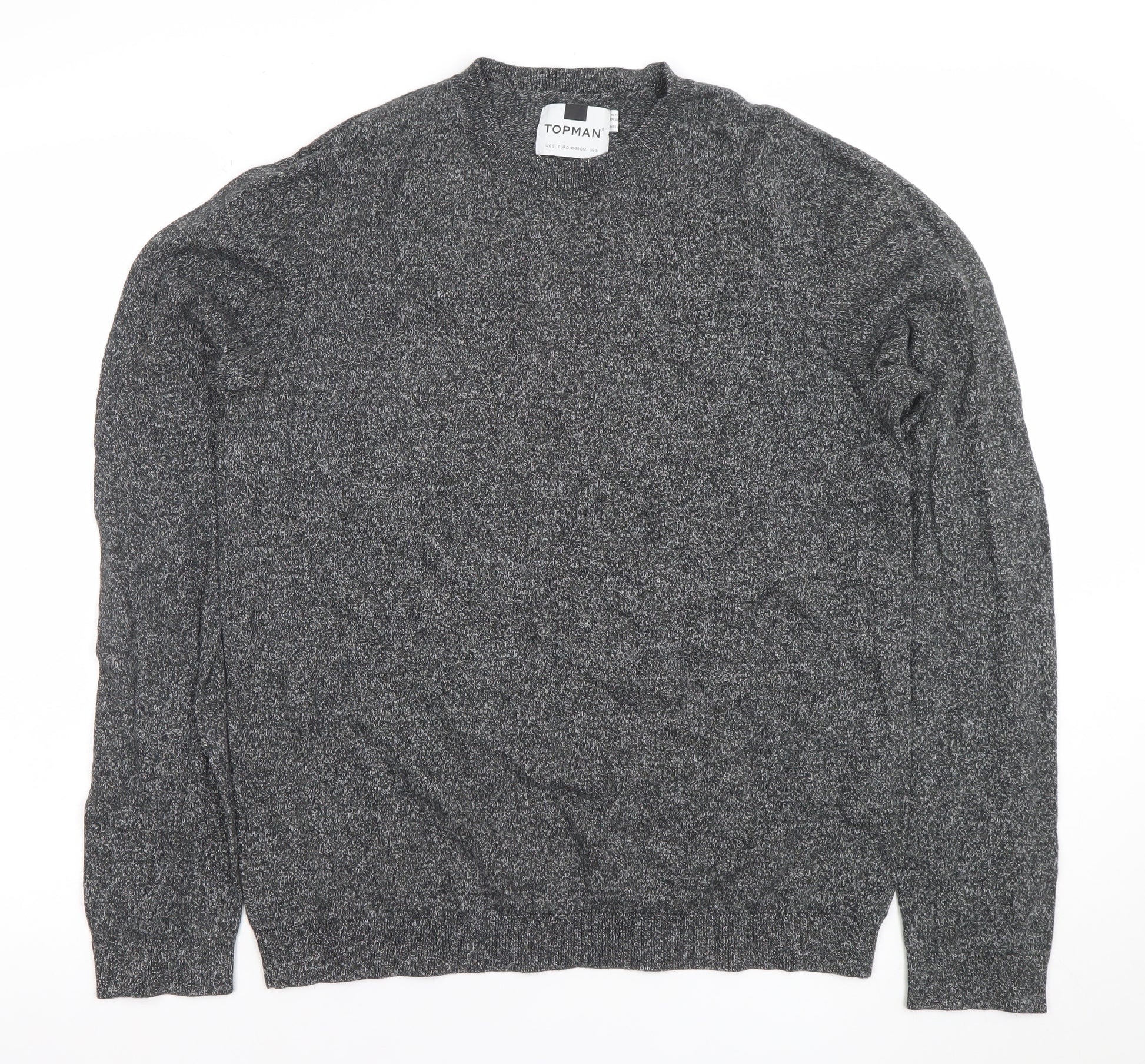 This Topman men's grey pullover jumper is a versatile wardrobe essential offering both comfort and understated style. Crafted from 100% cotton in a soft and breathable knit fabric, it provides an effortless combination of warmth and comfort, ideal for layering throughout the autumn, winter, and spring seasons. The lightweight construction makes it practical for everyday wear, while the crew neckline maintains a timeless silhouette that pairs well with shirts, jeans, or chinos for a relaxed yet refined look. Designed with a regular fit, this piece ensures unrestricted movement and a neat overall appearance without being too tight or too loose. The charcoal grey marl texture adds dimension and sophistication, making it equally suitable for casual outings or smarter settings. Subtle ribbed cuffs, hem, and neckline provide gentle structure and durability for lasting shape retention. Being machine washable, it’s easy to maintain and ideal for regular wear. Although pre-owned, this jumper remains in excellent overall condition with only minimal signs of light general wear, reflecting quality craftsmanship and good care from previous ownership. A dependable choice for men who appreciate classic, fuss-free style, this Topman crew neck jumper delivers an effortless combination of comfort, quality, and versatility. Whether worn layered under a jacket during the cooler months or simply as a standalone piece, it’s the perfect foundation item for any casual or smart-casual wardrobe. Complete your look with your favourite pair of jeans or chinos for a confident, contemporary finish ideal for everyday wear or weekend relaxation.