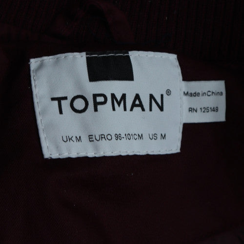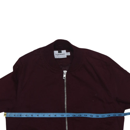 This Topman men's bomber jacket is a stylish and timeless piece perfect for casual wear throughout the cooler months of spring and autumn. Designed in a deep red shade, this jacket combines versatility and modern simplicity. Crafted from 100% cotton, the canvas fabric provides comfort and durability, making it ideal for everyday outfits or layering during transitional seasons. The jacket features a full zip fastening for ease of wear, with ribbed cuffs, hem, and collar ensuring a comfortable and flattering fit. The clean, minimalist lines give it a classic appeal that seamlessly complements a range of outfits, whether paired with jeans, chinos, or joggers. The band collar design adds a contemporary touch, while the short bomber length offers a flattering silhouette that suits various body types. This jacket also includes a lightweight cotton lining, which enhances comfort without adding bulk, making it breathable and practical for everyday use. The lack of heavy padding or insulation allows it to serve as the perfect layering piece, especially for mild weather or indoor wear. Ideal for casual occasions, travel, or even smart-casual looks when paired with the right ensemble, this Topman bomber jacket offers the perfect balance between comfort and style. The garment’s simple design, polished zip accent, and signature Topman craftsmanship reflect high-street quality and attention to detail. In excellent pre-owned condition with only slight signs of wear, it remains in great shape overall. This is a must-have wardrobe staple for the modern man looking to combine ease with effortless style. Add instant polish to your look with this versatile men's red cotton bomber jacket from Topman.
