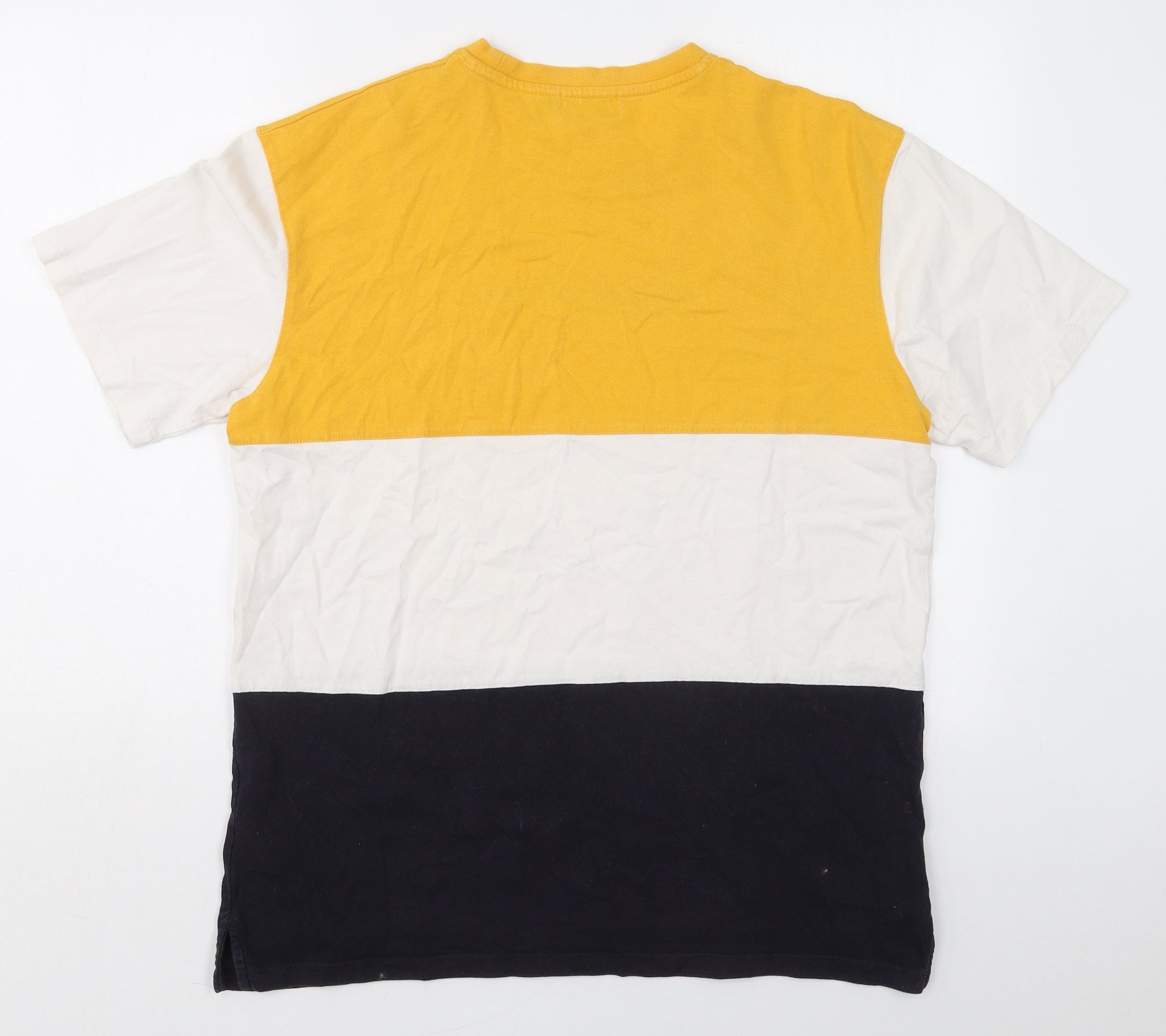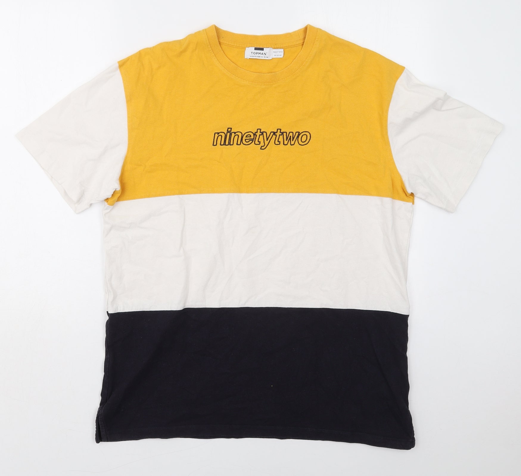 Mens Yellow Colourblock Cotton T-Shirt Size M Crew Neck - Ninety Two Blue