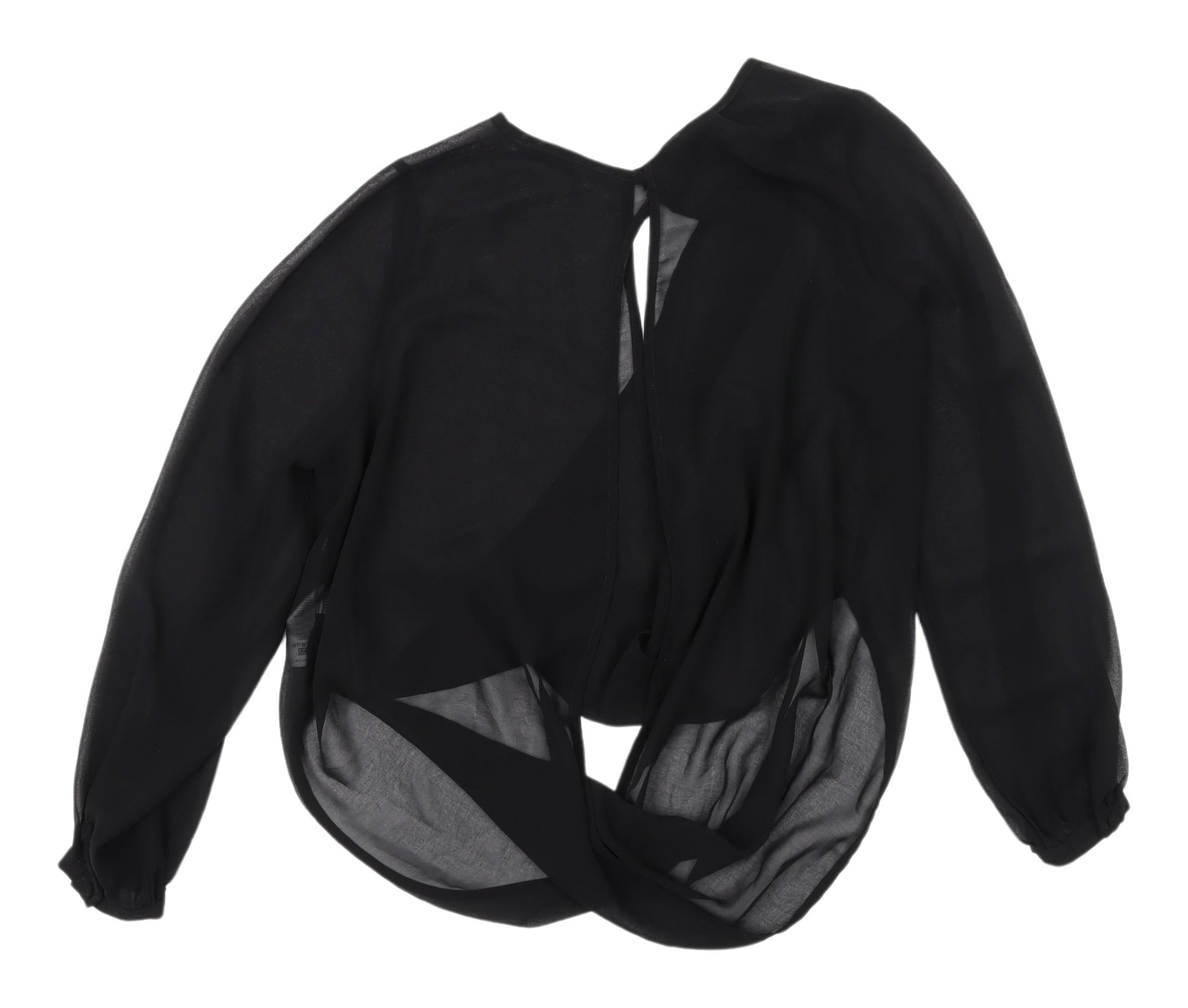 Elevate your wardrobe with this chic Topshop Black Wrap Blouse, perfect for women seeking a touch of elegance and comfort. Crafted from lightweight chiffon, this long sleeve blouse offers a soft and breathable experience, ideal for warmer spring and summer days or a stylish evening out. The regular fit pairs seamlessly with a variety of outfits, making it a versatile addition to your collection. Designed with a round neckline and balloon sleeves, this blouse exudes sophistication and a hint of playfulness, suitable for both casual and cocktail occasions. The solid black hue adds a classic elegance, while the subtle wrap style brings a contemporary edge, ensuring you shine with confidence. Machine washable for convenience, this blouse is perfect for those who love hassle-free maintenance. With its excellent condition, gently worn with no visible flaws, you'll enjoy a high-quality garment at a fraction of the cost. Enhance your style with this stunning Topshop blouse—ready to flatter your figure and complement your fashion sense.