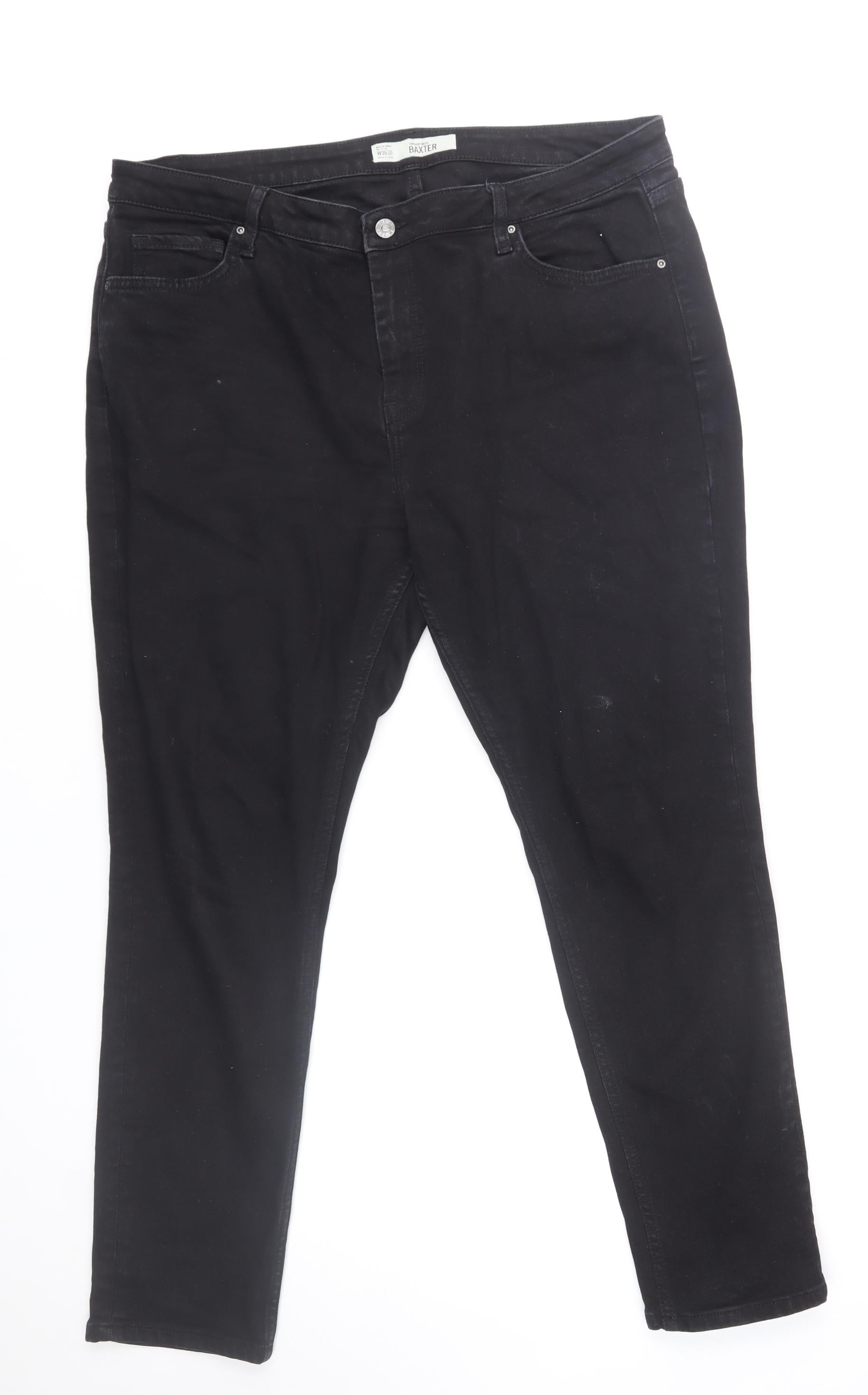 Elevate your casual wardrobe with these Topshop Baxter jeans, crafted for men who value both comfort and style. Presented in a timeless black shade, these jeans offer versatile simplicity that pairs effortlessly with any outfit. Made from a durable and breathable cotton fabric blended with a hint of elastane, the jeans feature a soft denim texture that allows for comfort and movement throughout the day. With a regular fit and straight leg style, they provide a clean and classic look suitable for day-to-day wear while maintaining a flattering silhouette.The Topshop Baxter collection is known for its reliable design and quality construction. These jeans include the traditional five-pocket layout, providing both style and practicality, with secure button and zip closure fastening. The mid-rise waist ensures a comfortable fit that sits perfectly at the hips, making it ideal for layering with shirts, tees, and jumpers alike. Machine washable for easy care, the fabric retains its dark wash, offering a rich black tone that stays sharp even with frequent wear.Built to last, these jeans combine modern comfort with understated sophistication. Their dark, minimalist finish means they suit both smart-casual and relaxed looks—equally ideal for an evening out or a laid-back weekend style. The denim blend ensures flexibility without losing form, supported by its breathable and easy-care design.In very good pre-loved condition with only minor linting, these jeans remain in excellent wearable shape with no notable wear or damage. Originally designed for lasting comfort and style, they promise to be a dependable staple in any wardrobe. The W36 L32 size ensures a comfortable fit for most builds, offering the right balance of proportions without compromise. A top pick for those looking for a trusted, versatile pair of jeans with modern appeal and long-lasting comfort, these Topshop Baxter jeans are a stylish and affordable wardrobe essential.