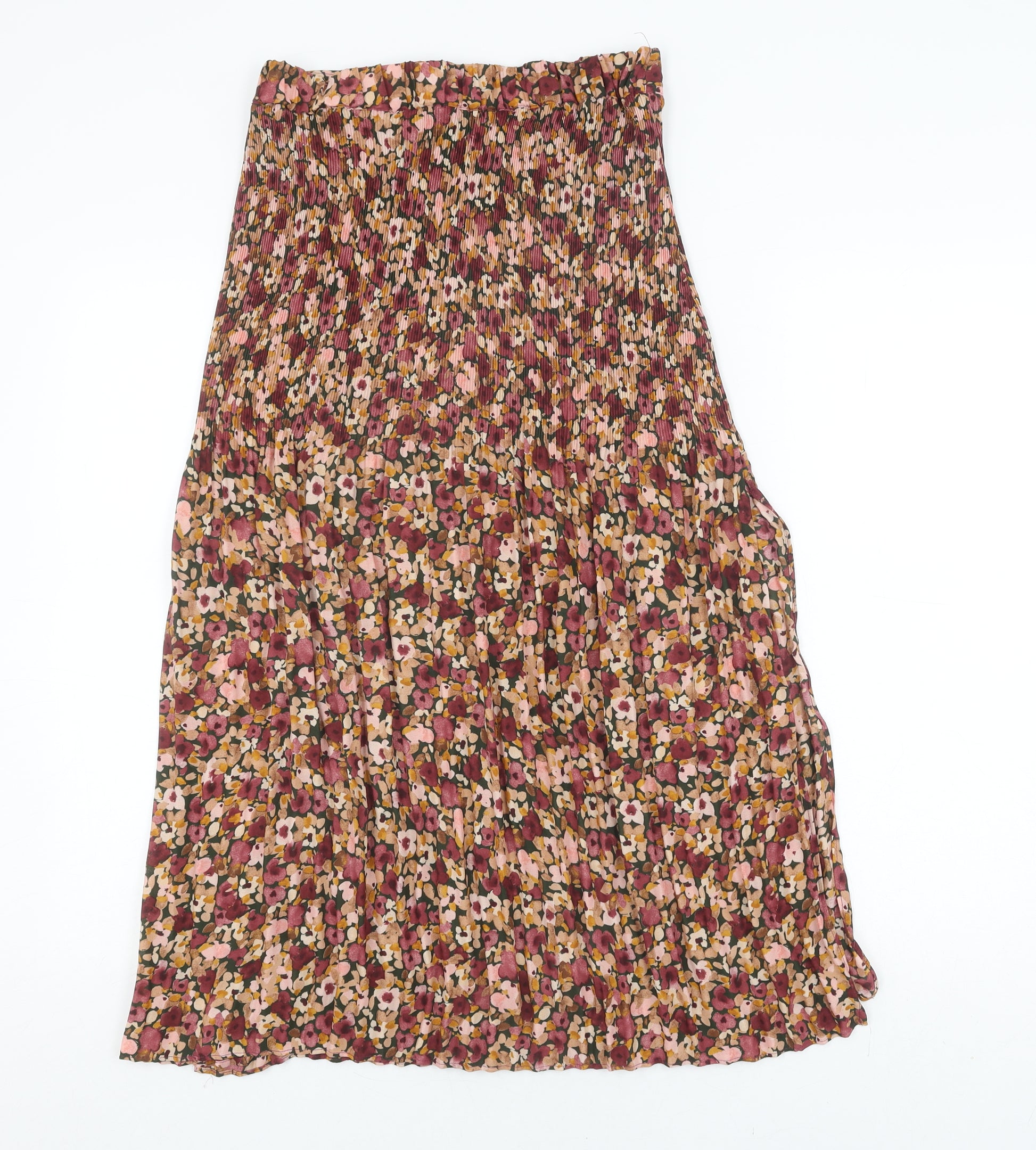 Petite Floral Pleated Midi Skirt Multicoloured UK 6