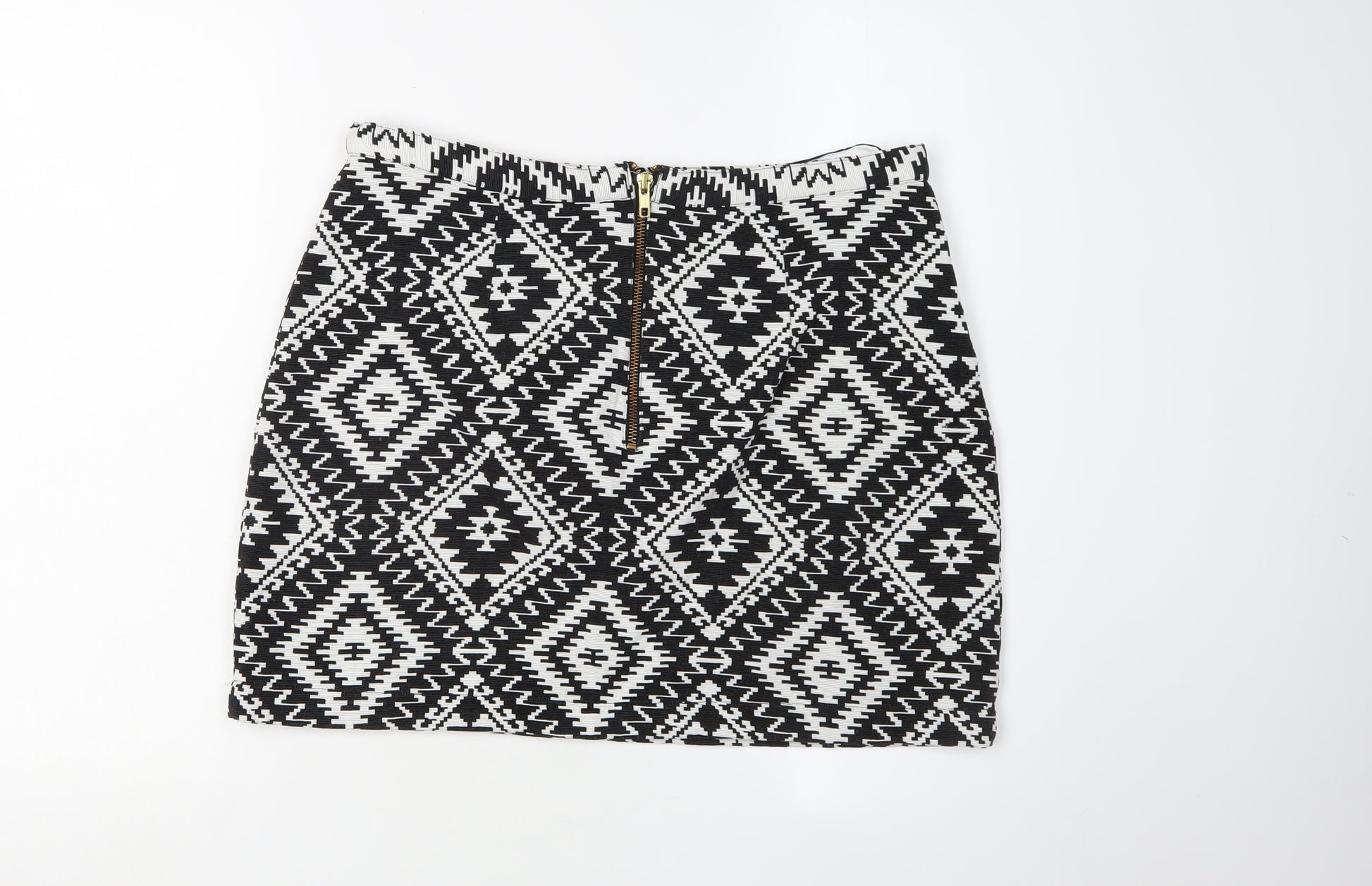 This Topshop Tall women's skirt is a stylish addition to any wardrobe. Crafted in chic black with a dynamic geometric pattern, the skirt is designed in a straight and pencil style, complementing the silhouette. The zip accent adds a functional yet fashionable touch. Made from soft viscose, this skirt offers both comfort and a flattering fit, making it perfect for casual outings. Its size 14 fit is designed for taller women, ensuring a better proportioned cut. With its classic design, this skirt seamlessly transitions between seasons and occasions, making it a versatile and timeless choice. Elevate your fashion game with this elegant piece that strikes a perfect balance between contemporary style and classic charm.
