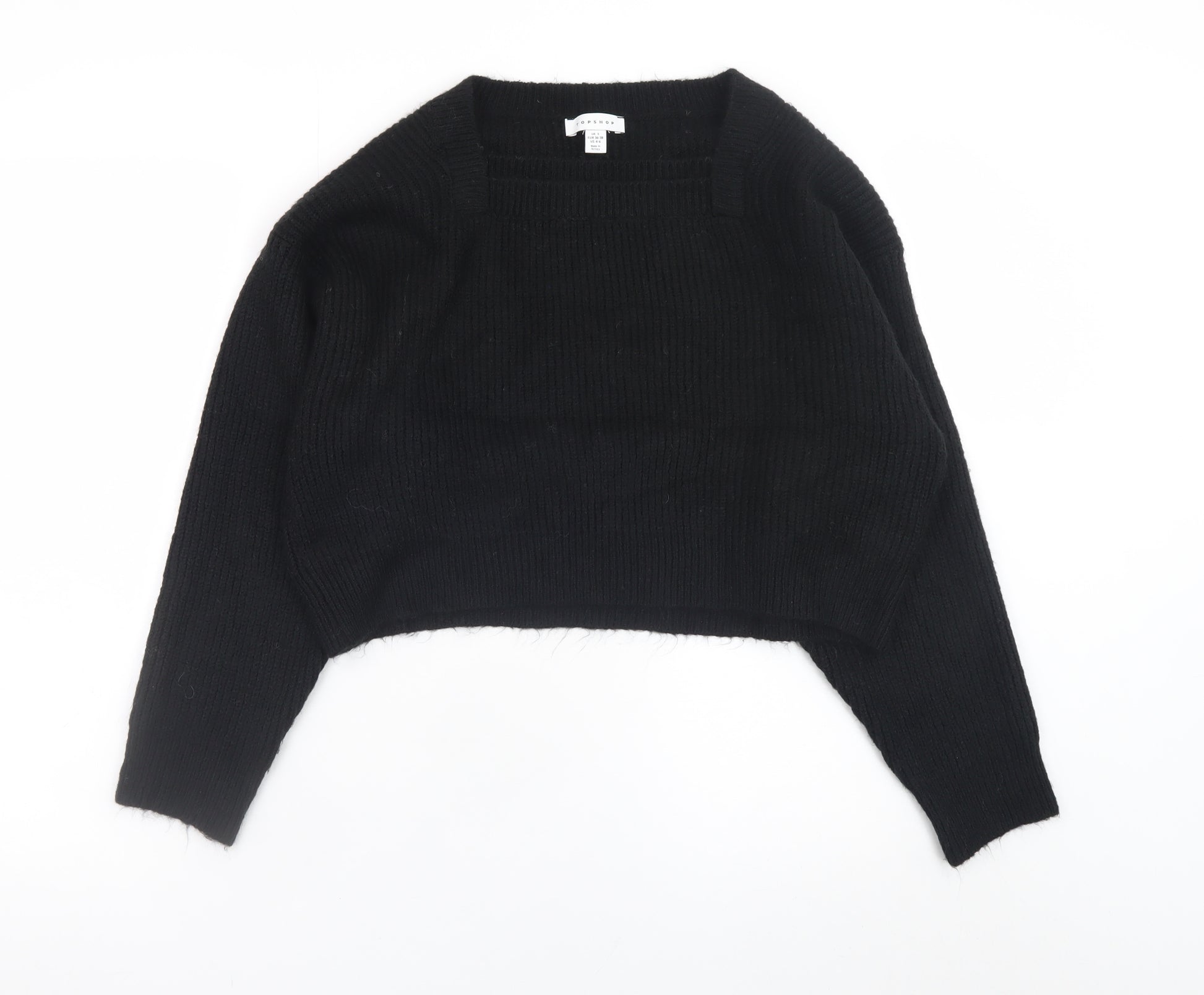 Elevate your casual wardrobe with this stylish black pullover jumper from Topshop. Designed for women who appreciate a modern and minimalist aesthetic, this piece embodies comfort and effortless style. Crafted from a blend of soft and durable fibres—74% acrylic and 26% polyester—it offers a cosy yet lightweight knit texture that feels gentle against the skin while providing warmth for cooler seasons. The relaxed fit and slightly cropped silhouette give it a contemporary edge, perfect for layering over shirts or pairing with high-waisted jeans for a chic, laid-back look. Featuring long sleeves and a distinctive square neckline, this jumper combines modern details with timeless simplicity. The tight-knit construction ensures shape retention, while the smooth finish enhances the sleek black tone for a versatile wardrobe essential. Made in Turkey, the craftsmanship reflects Topshop’s commitment to quality and fashionable everyday wear. Suitable for casual occasions or relaxed weekend outings, this piece is ideal for autumn and winter styling. It’s easy to care for—hand wash only to maintain its shape and texture. The condition is excellent, showing minimal signs of previous wear and no visible flaws. Add this black knit pullover to your collection for an effortlessly cool staple that pairs well with almost anything. Whether you’re heading out for a casual meet-up or staying cosy indoors, this Topshop jumper delivers style and comfort in perfect balance. A must-have versatile piece that effortlessly transitions between outfits and seasons.