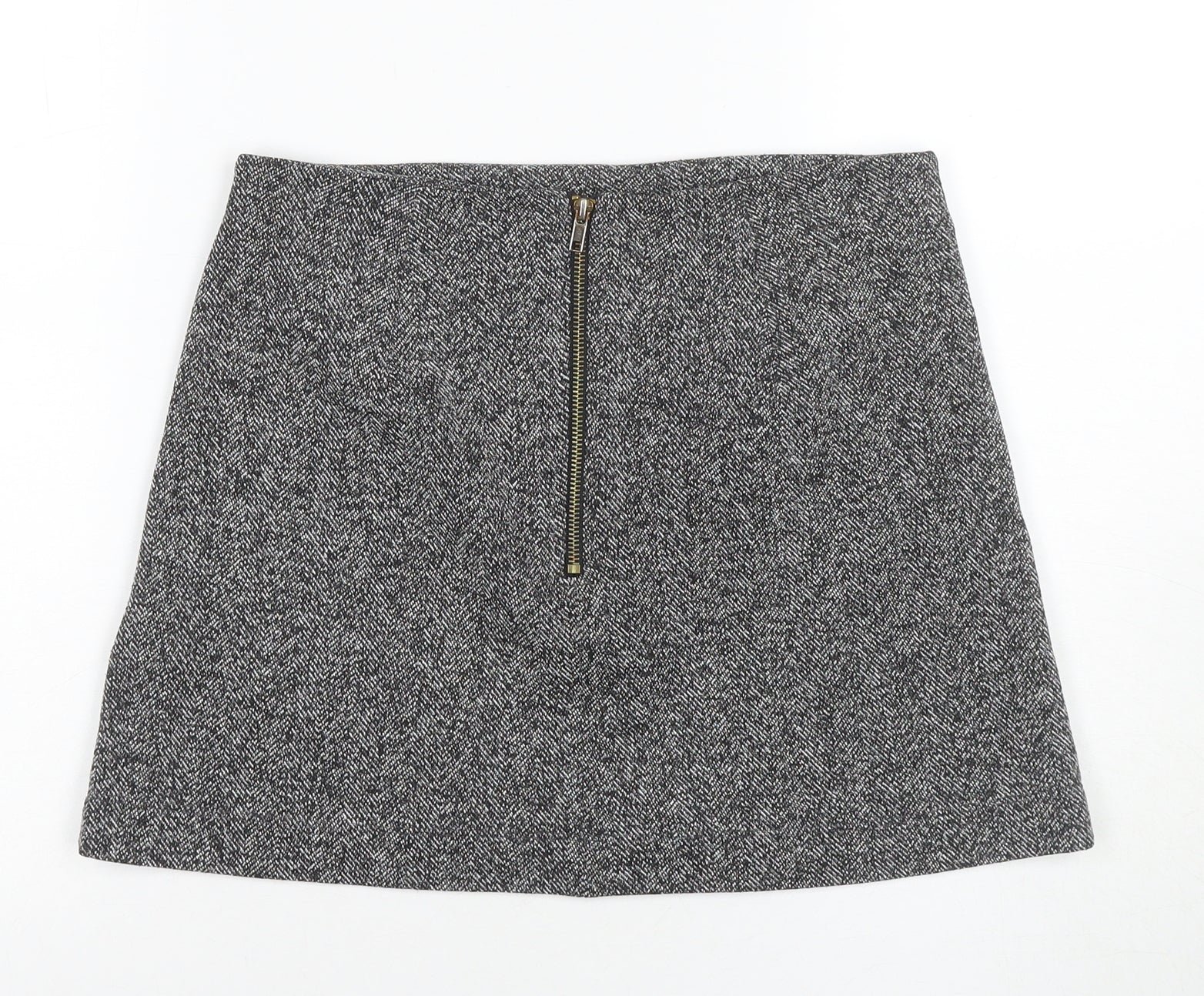 White Stuff Womens Grey Embroidered A-Line Wool Blend Skirt Size 10
