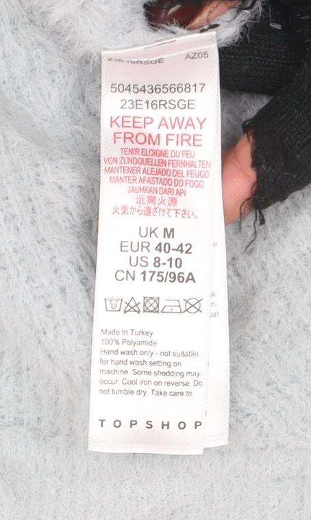 Add an effortlessly chic touch to your everyday style with this women’s grey V-neck jumper from Topshop. Crafted from luxuriously soft 100% polyamide fabric, it offers a lightweight and cosy feel that’s perfect for layering during the cooler months of autumn and winter. The finely knitted texture lends subtle sophistication, while the long sleeves and relaxed fit create a flattering silhouette designed for both comfort and style. The V-neckline provides a feminine touch and makes it easy to pair this piece with shirts, blouses, or camisoles for a versatile layered look. Ideal for casual wear, this Topshop pullover jumper is a timeless wardrobe essential that can be dressed up or down with ease. Team it with your favourite jeans and ankle boots for a laid-back off-duty outfit, or pair it with a skirt and statement accessories for a polished yet relaxed ensemble. Designed for everyday comfort, it’s perfect for women who love contemporary style with a soft, cosy feel. The subtle grey shade complements a range of colours and adds a neutral elegance suitable for any season. Although pre-loved, this jumper remains in excellent condition with only minimal signs of wear and no major flaws. Its durable yet soft fabric makes it both comfortable and easy to maintain, requiring only gentle hand washing. Whether you’re stepping out for a weekend brunch, working from home, or simply lounging in comfort, this Topshop knit jumper merges classic design with modern versatility, making it a smart addition to any fashion-conscious wardrobe.