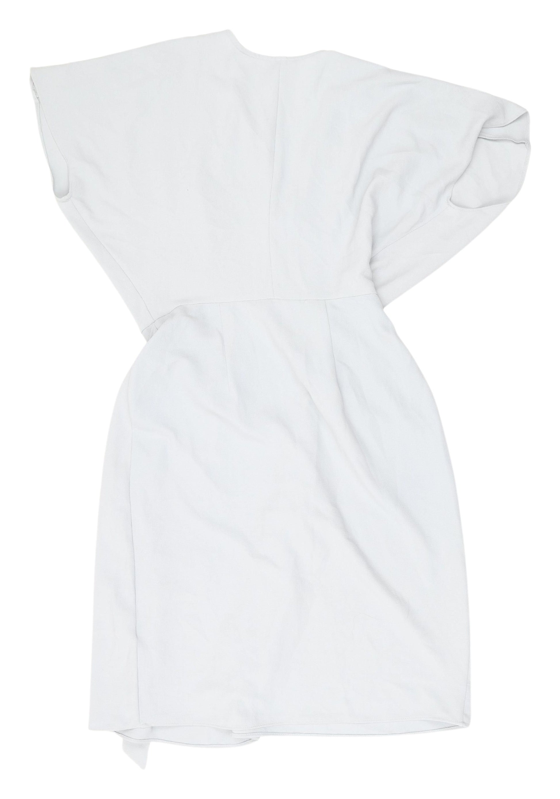 Elevate your wardrobe with this elegant Topshop women's white wrap dress, perfect for any occasion. Crafted with a lightweight knit fabric blend of 97% polyester and 3% elastane, this dress provides both comfort and style. Its flattering V-neck and sleeveless design are ideal for warmer days, while the flutter sleeves add a touch of sophistication. The minimalist look and no-pattern design make this dress versatile for various settings, from casual outings to more upscale gatherings. In excellent condition, with only slight creases, this dress is ready to enhance your fashion collection. Pair it with heels for a sleek, glamorous look, or dress it down with sandals for a daytime ensemble. Machine washable for easy care, this stylish and comfortable Topshop wrap dress is a must-have addition to any modern wardrobe. Grab this elegant piece today and enjoy its effortless charm and versatility.