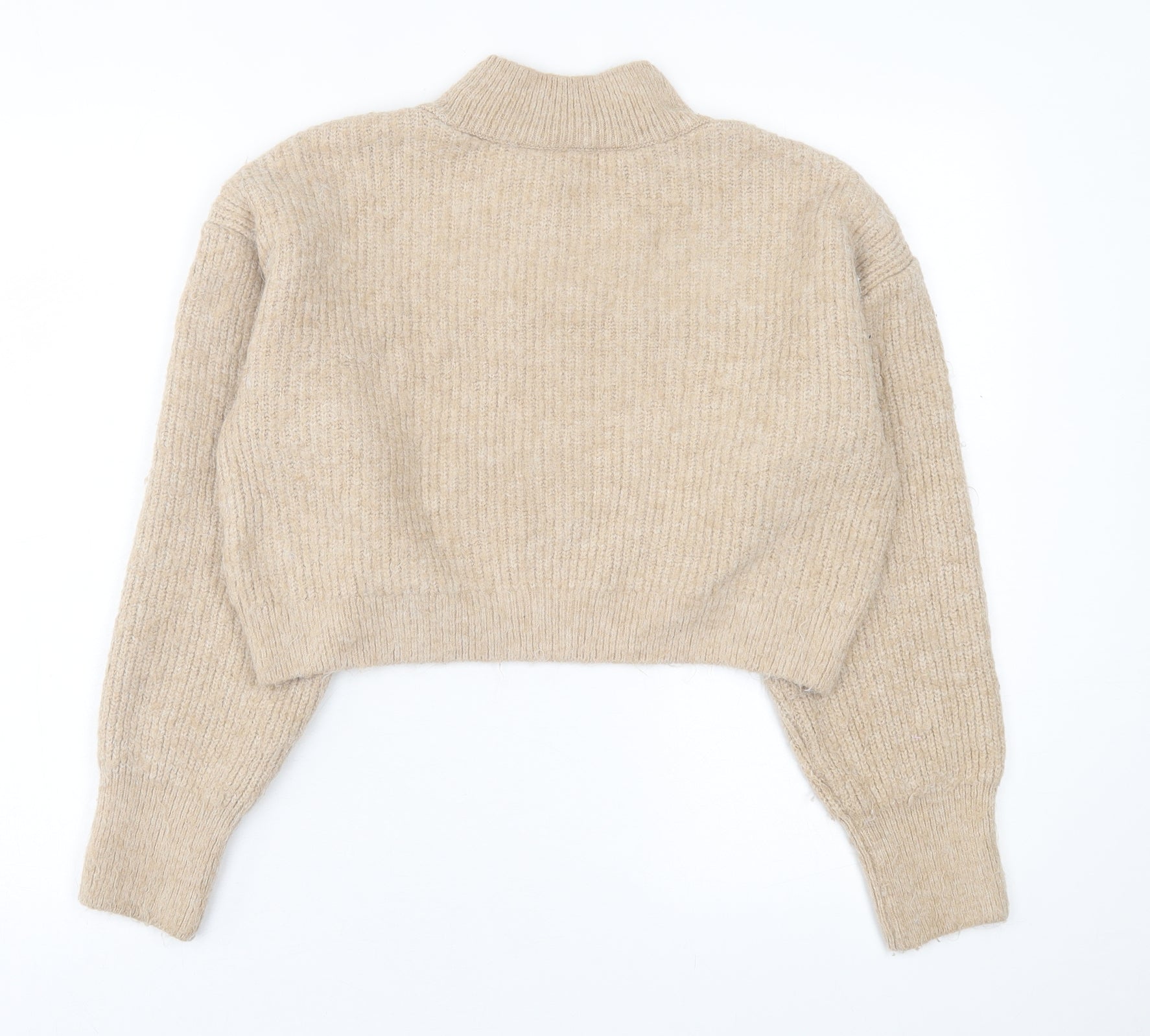 Womens Beige High Neck Acrylic Pullover Jumper Size M