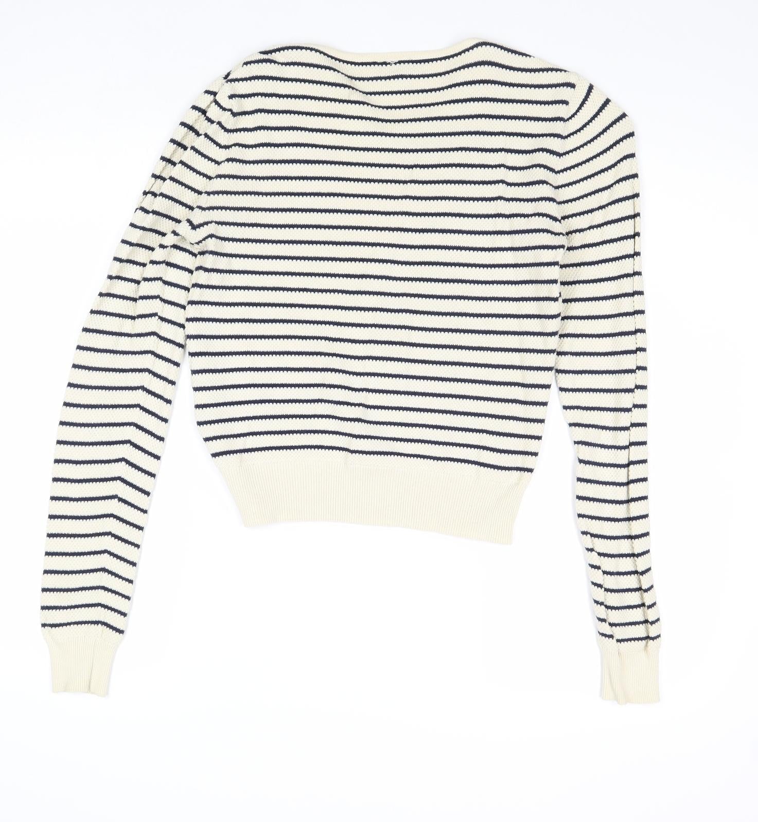 Womens Beige Round Neck Striped Cotton Pullover Jumper Size 10