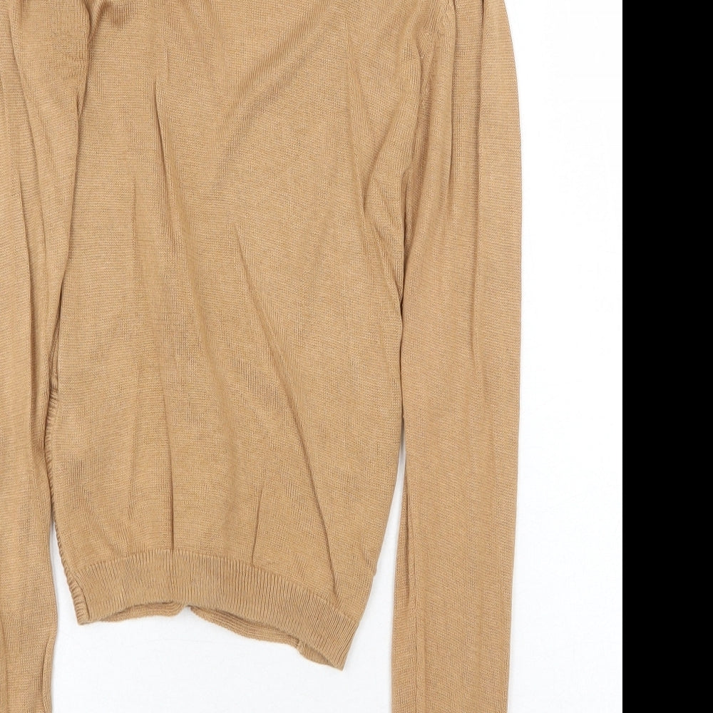 Womens Beige V-Neck Viscose Pullover Jumper Size 10