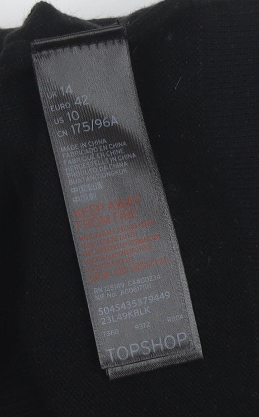 Introducing this stylish Topshop Women's Jumper, a versatile addition to your wardrobe. Designed in a classic black colour, this crew neck jumper is perfect for those seeking a blend of comfort and elegance. The jumper is crafted primarily from acrylic and polyamide, ensuring a soft and durable wear. Its long sleeves feature a unique beaded accent, adding a touch of sophistication to your outfit. The raglan sleeve style furthers its contemporary appeal, making it a must-have for modern fashion enthusiasts. Perfect for any occasion, this jumper suits a variety of settings, whether you're heading to a casual brunch or a more formal gathering. With its new condition and original tags, it's ready to be a staple in your collection. Don't miss out on this opportunity to enhance your seasonal wardrobe with a piece that's both chic and comfortable.