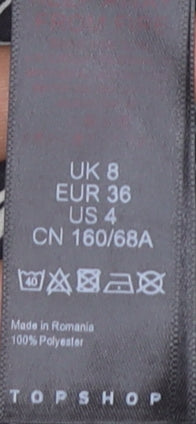 Elevate your wardrobe with this stylish Topshop Women's Black Floral Midi Skirt in size 8. Featuring a chic Straight & Pencil style, this skirt is perfect for any casual occasion. It showcases a beautiful black floral pattern adding a touch of elegance to your outfit. Made from 100% polyester, it's both durable and comfortable for daily wear. The skirt is lined for added comfort and has a convenient zip closure. Suitable for all seasons, it falls gracefully to a midi length, making it a versatile addition to your collection. Don't miss out on this fabulous skirt that pairs well with any top for a complete look.