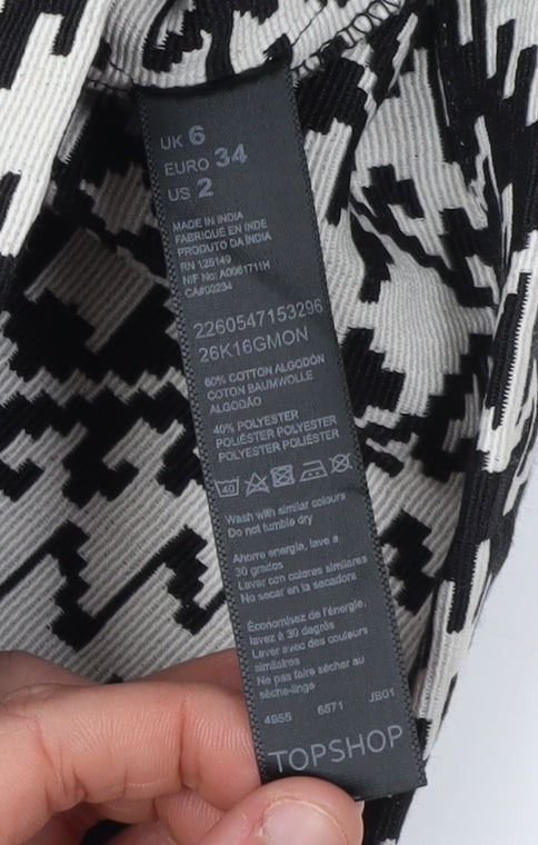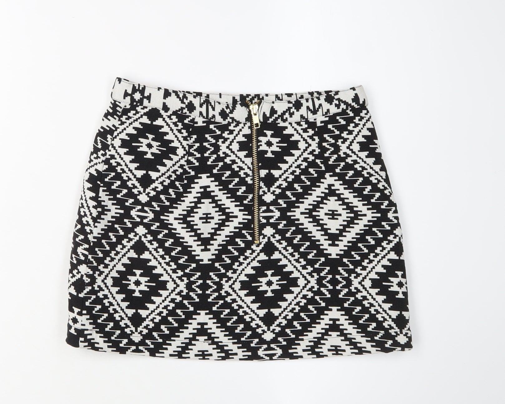 Elevate your casual wardrobe with this chic Topshop skirt, featuring a striking black and white Aztec geometric pattern. Crafted from a comfortable blend of 60% cotton and 40% polyester, this knit skirt is perfect for those seeking both style and comfort. Designed for women who appreciate fashion-forward aesthetics, its short length and straight pencil style make it an ideal choice for various settings, from casual outings to fun gatherings. The convenient zip closure ensures easy wear, while the lined fabric adds an extra layer of comfort. Suitable for all seasons, this versatile piece is machine washable, allowing for simple garment care. Whether you're pairing it with a casual top or a dressy blouse, this skirt promises to make a stylish statement. Available in size 6, it embodies Topshop's renowned quality and flair. Grab this essential piece with a touch of Aztec theme to refresh your collection and enjoy effortless glamour on any occasion.