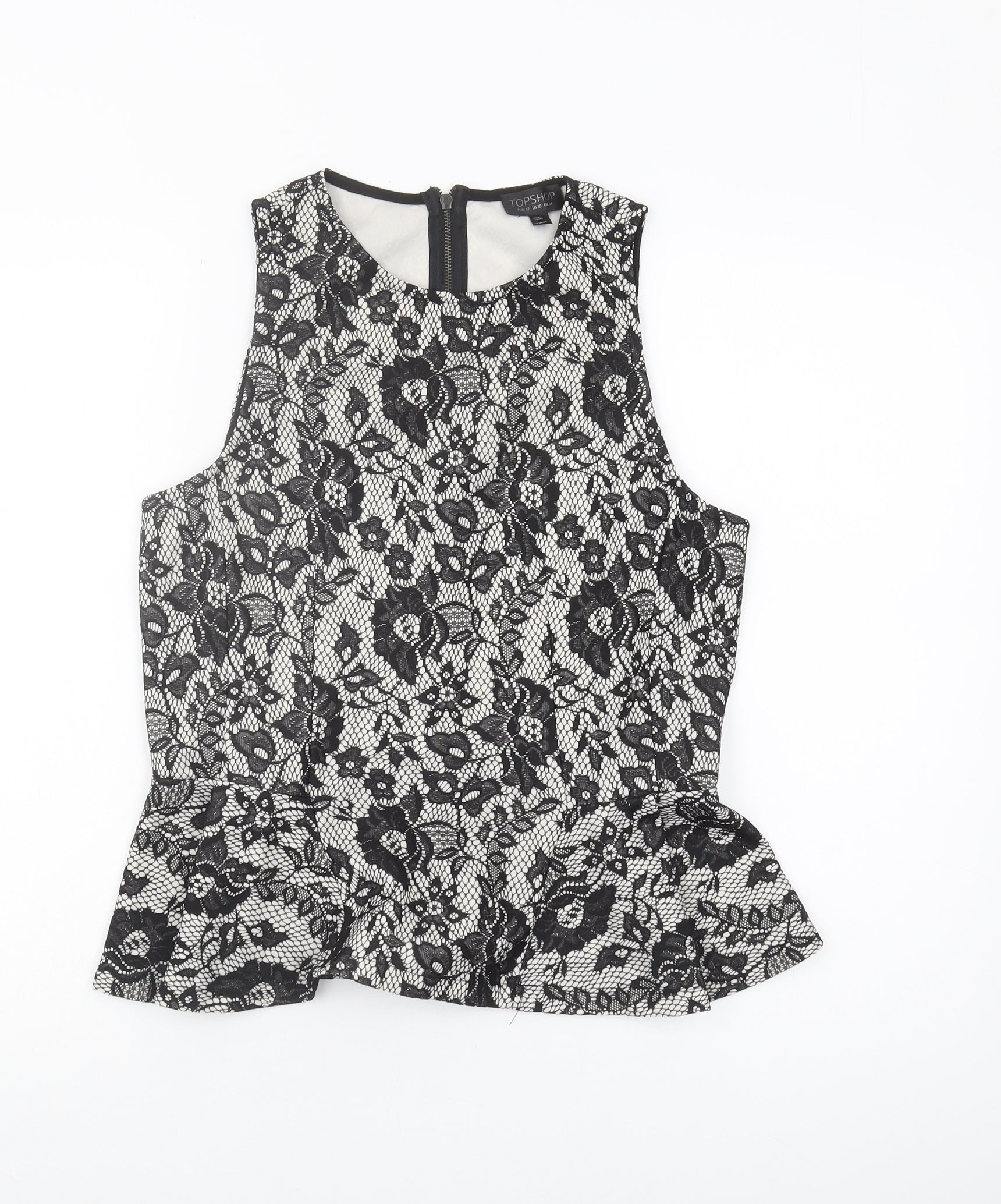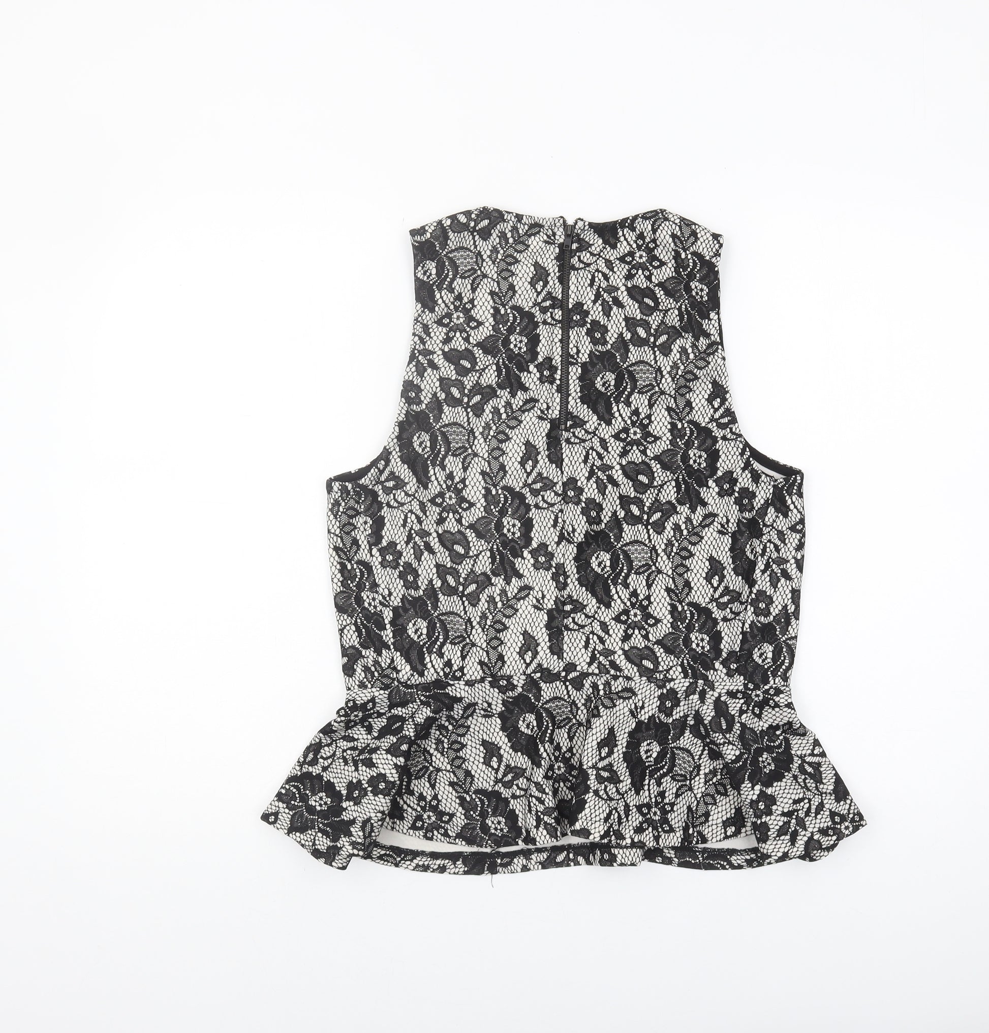 Women's Black Lace Floral Blouse Size 14 Sleeveless