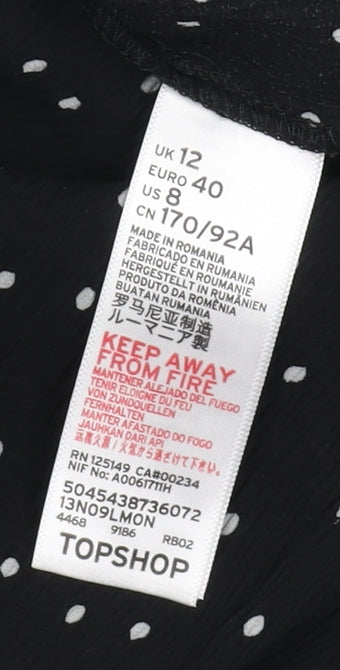Embrace a chic and playful look with this Topshop Women's Blouse in classic black adorned with charming polka dots. Crafted from 100% polyester, this piece offers a smooth and comfy fit, perfect for any casual outing or summer event. The off-the-shoulder, puff sleeve design adds a trendy twist to the cropped style, making it a fashion-forward choice for your wardrobe. Whether paired with high-waisted jeans or a flowy skirt, this blouse is versatile enough to complement various outfits. The polka dot pattern brings a fun and lively touch, perfect for those sunny days out. Slip into this regular fit blouse effortlessly with its pullover closure, ensuring ease and simplicity in styling. Machine washable for hassle-free care, this blouse delivers convenience without compromising style. Ideal for casual occasions, this Topshop design promises both comfort and elegance, making it a must-have addition to your collection. With its new condition, this blouse is ready to add a fresh spark to your ensemble. Own your look and step out with confidence in this exquisite Topshop blouse.