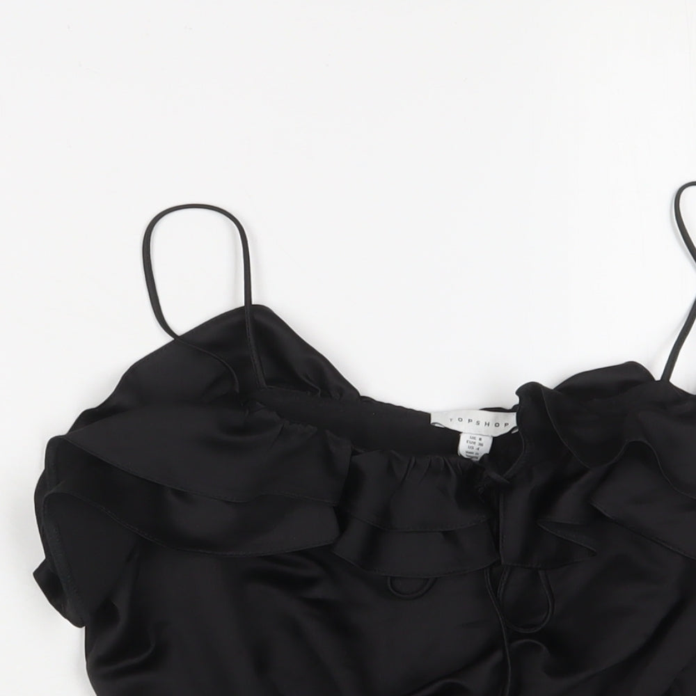 Womens Black Polyester Cropped Tank Size 8 V-Neck