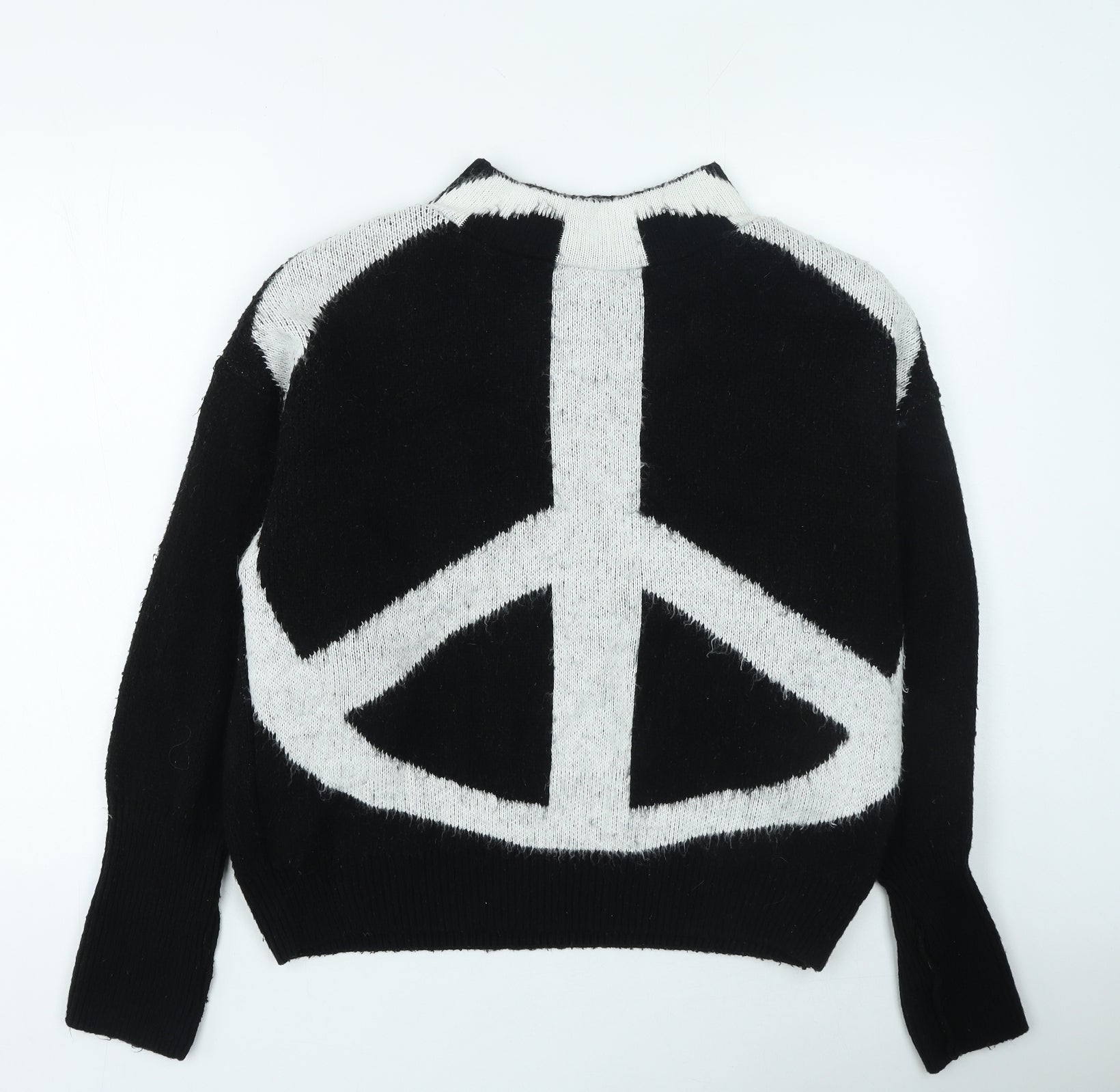 Womens Black Round Neck Acrylic Pullover Jumper Size XS - Peace Sign