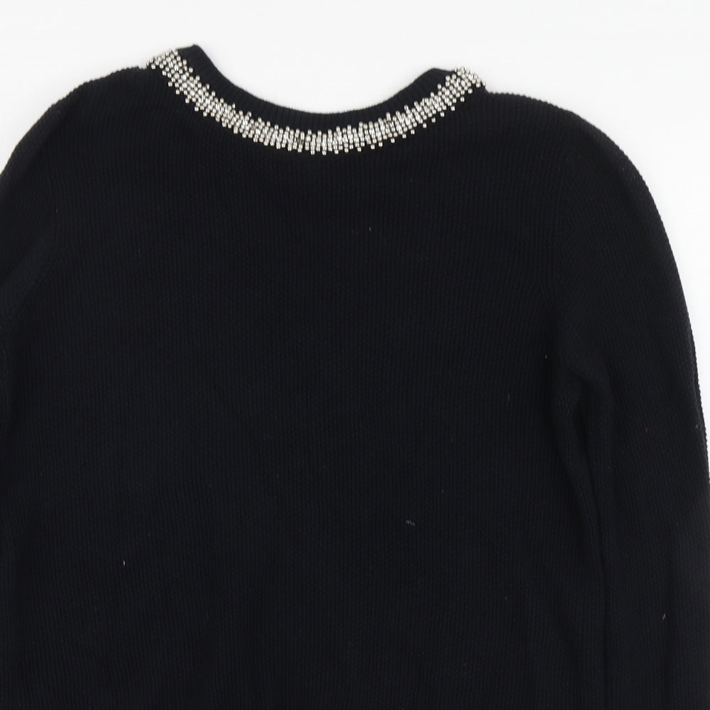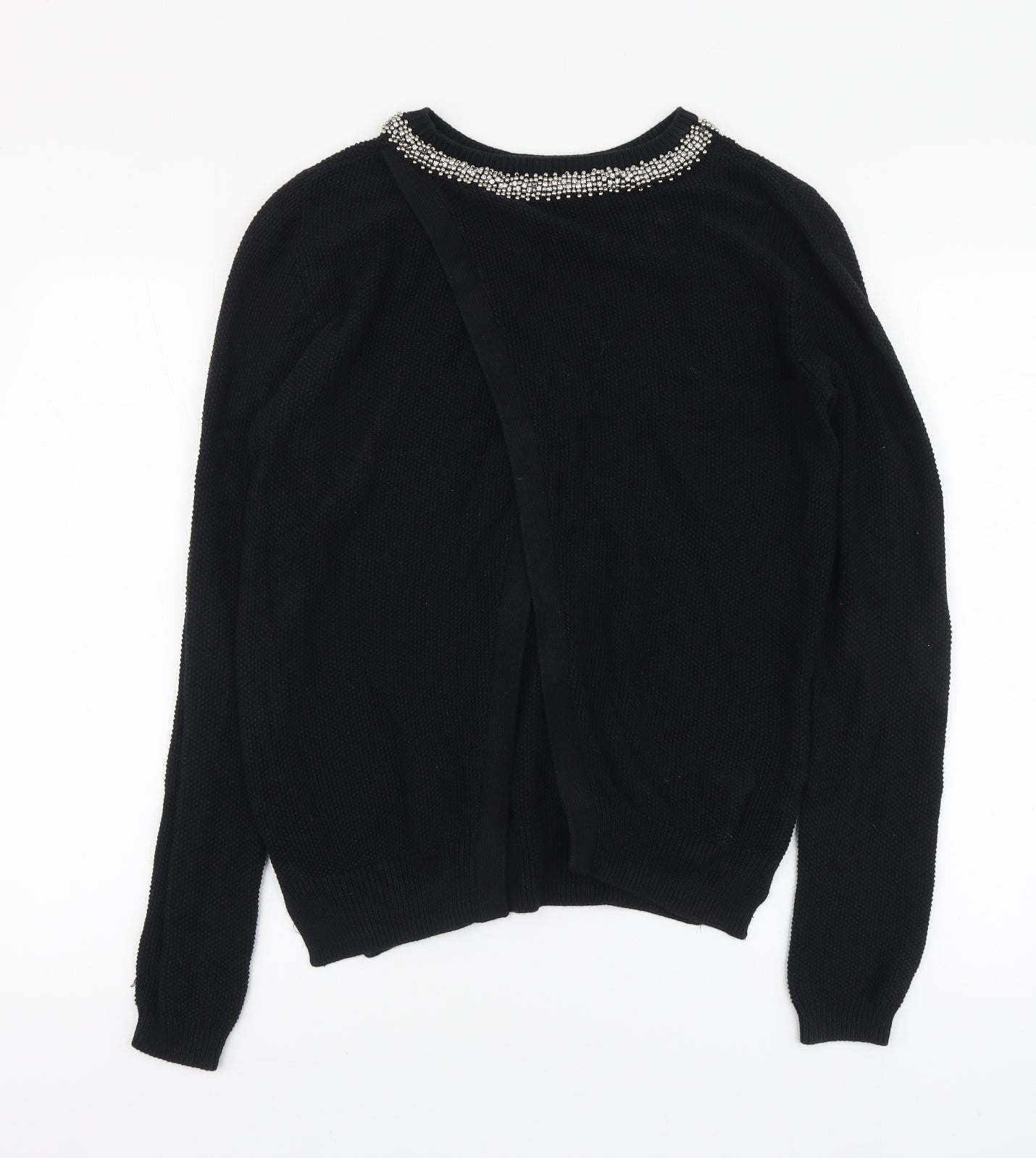 Womens Black Round Neck Cotton Pullover Jumper Size 10