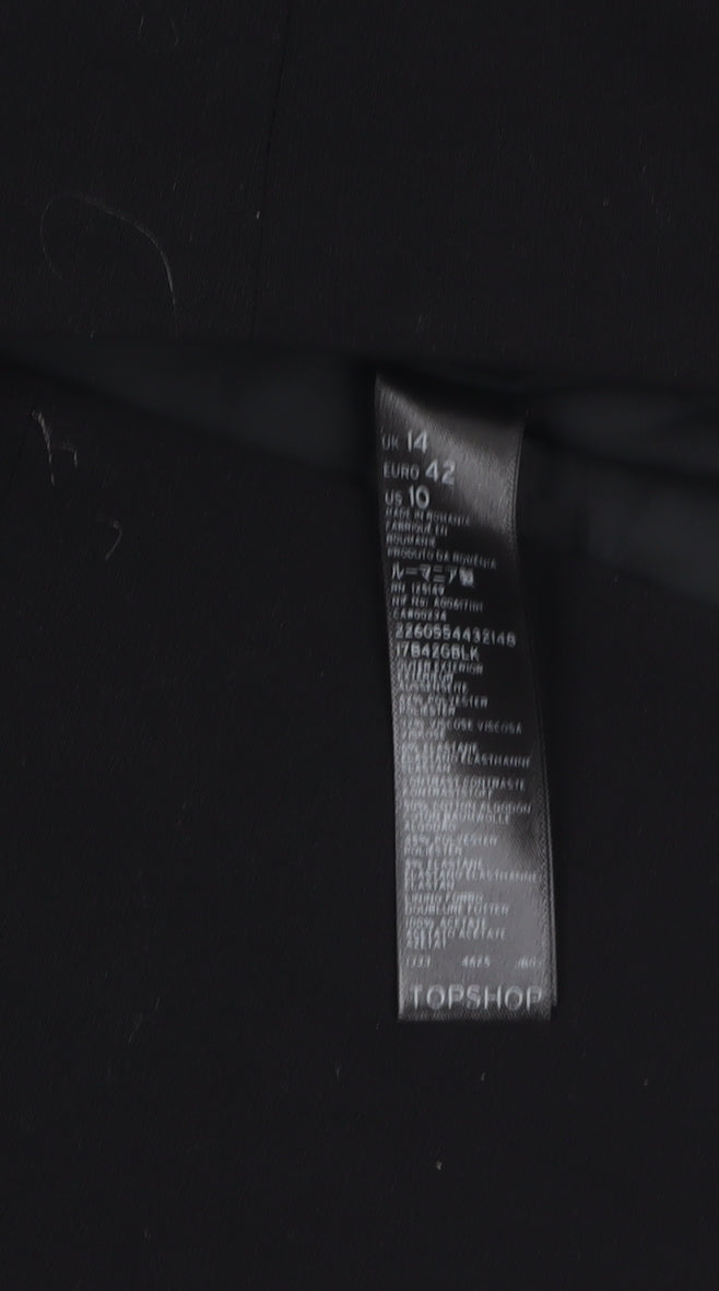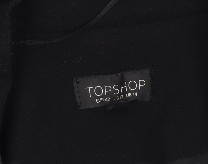 Elevate your wardrobe with this elegant women's black tuxedo blazer from Topshop, tailored in a sleek, figure-flattering shape that exudes confidence and sophistication. Designed with a shawl lapel in a glossy satin finish, this single-breasted blazer is a timeless piece perfect for formal occasions, office environments, or evening events. The jacket features a fully lined interior crafted from smooth acetate for comfort and durability. Its high-quality woven blend of 78% polyester, 18% viscose, and 4% elastane provides just the right amount of stretch to maintain structure while allowing freedom of movement. The cropped length and tailored fit offer a modern silhouette, while the single-button closure enhances a clean, minimalist look. Ideal for autumn, winter, or spring, this blazer pairs effortlessly with tailored trousers, pencil skirts, or denim for a versatile day-to-evening outfit. Perfect for business meetings, cocktail parties, and other formal occasions, this piece embodies refined style with an edge. In excellent pre-owned condition, with light signs of wear that do not detract from its chic appearance, this Topshop tuxedo blazer remains a statement piece ready to impress. Whether dressing for workwear or an elegant evening out, its sleek design and subtle detailing make it a wardrobe favourite that combines fashion-forward design with timeless appeal. Add this sophisticated black jacket to your collection for a polished, versatile style update.