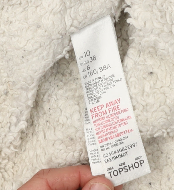 Embrace timeless style with this Topshop Women's Blue Denim Jacket, perfect for elevating your casual wardrobe. Designed with a classic button closure and crafted from durable cotton, this jacket offers both comfort and style. Its mid-length silhouette features a collared design and convenient pockets, making it a versatile addition to your collection. Ideal for autumn and winter, the jacket's faux fur and polyester lining provide added warmth, ensuring you stay cozy during cooler months. Dress it up or down for a variety of occasions, from casual outings to laid-back gatherings. In excellent condition, this jacket features only light wear, guaranteeing a stylish look without compromise. Machine washable for easy care, it's a practical choice for any fashion-forward woman. Whether layered over a jumper or paired with your favourite jeans, this denim jacket is the ultimate must-have for a chic, effortless ensemble.