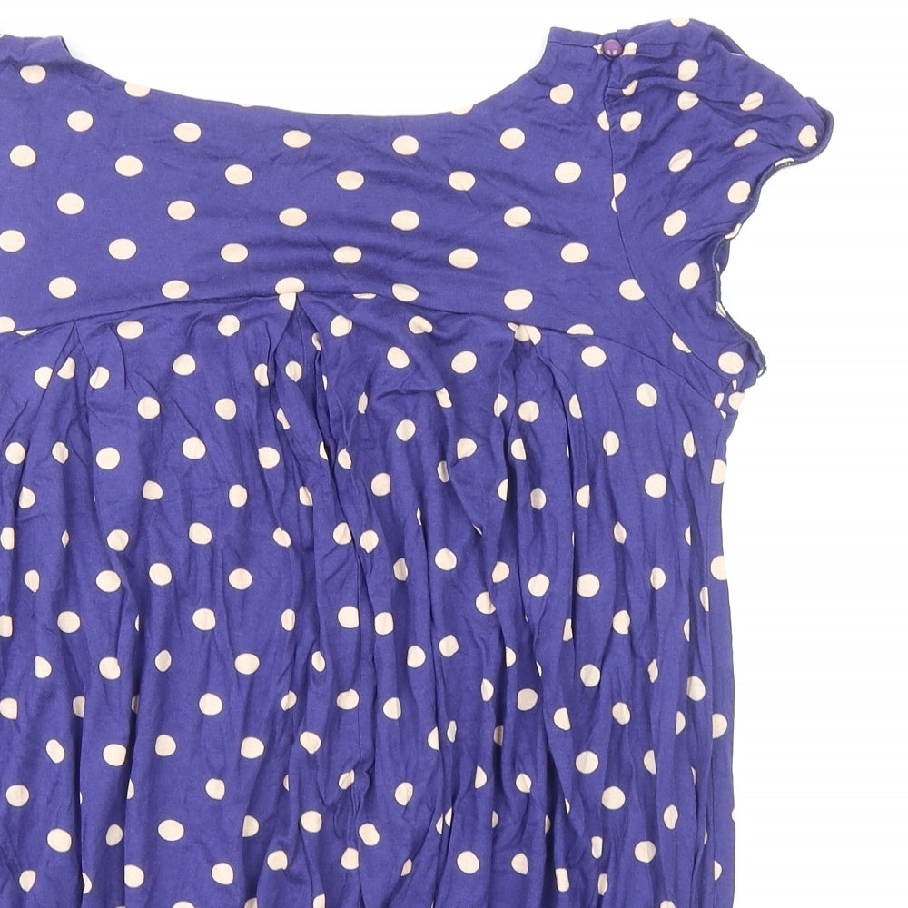 Womens Blue Polka Dot Viscose Basic Blouse Size 14 Boat Neck