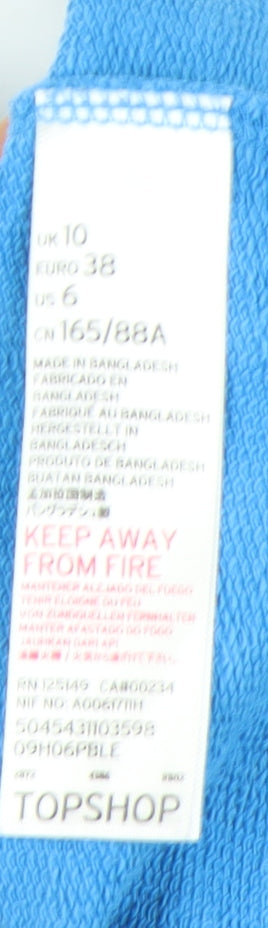 Step out in style with this classic blue pullover hoodie from Topshop, perfect for a casual day out or a relaxed evening in. Crafted from 100% cotton, this hoodie ensures maximum comfort and breathability, making it suitable for all seasons. Its regular fit design is accompanied by long raglan sleeves, allowing for a comfortable range of motion. The hooded neckline, complete with a drawstring closure, adds an element of style and versatility, ensuring you can adjust it to your preference. A convenient front pocket provides a practical touch, ideal for keeping your hands warm or storing small essentials. This women's hoodie, available in size UK 10, features a simple yet chic design with no pattern, ensuring it blends effortlessly with any outfit. Whether you’re lounging at home or stepping out, this hoodie promises both comfort and style. With brand new condition including original sales tags, this Topshop hoodie is a must-have addition to your wardrobe.