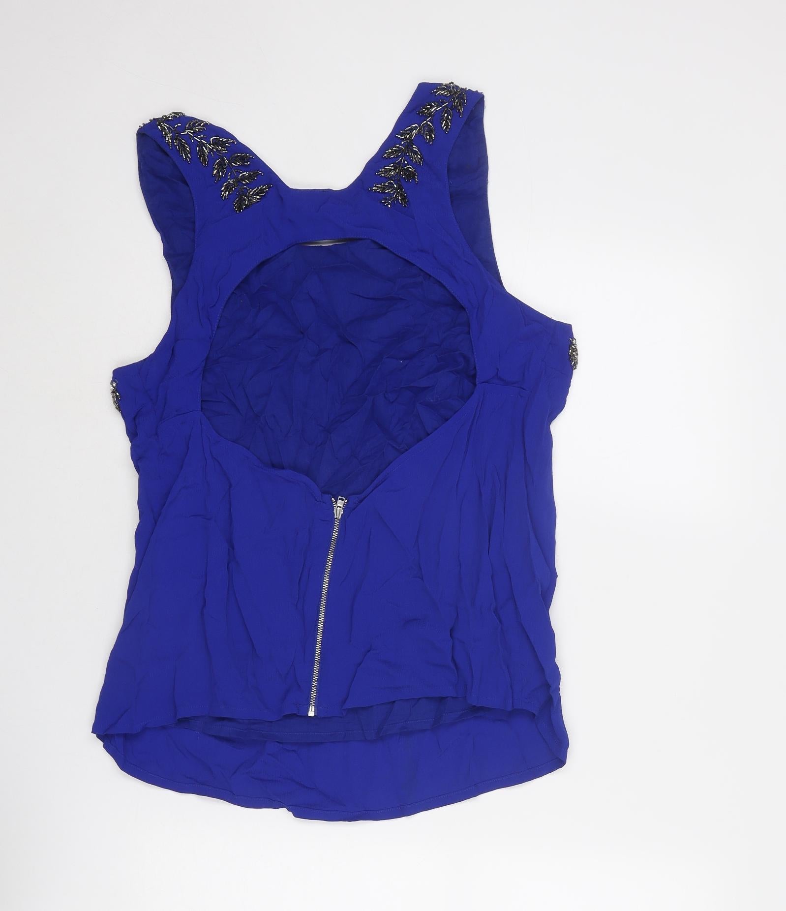 Womens Blue Viscose Basic Tank Size 14 Boat Neck - Embellished
