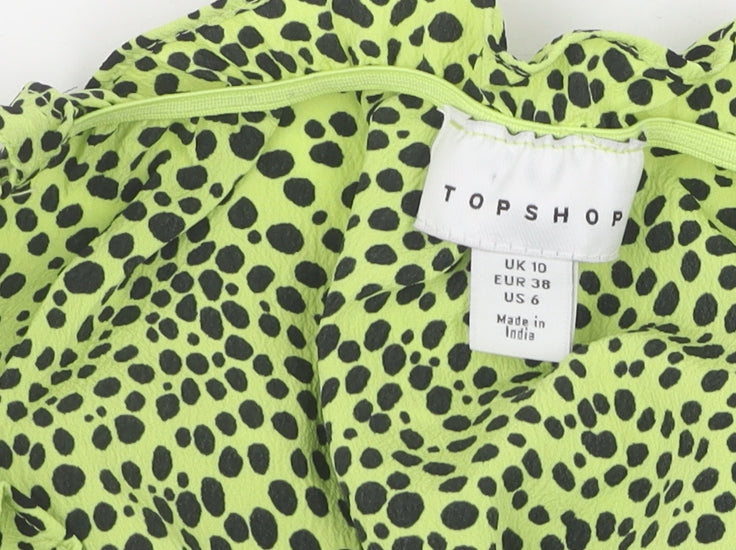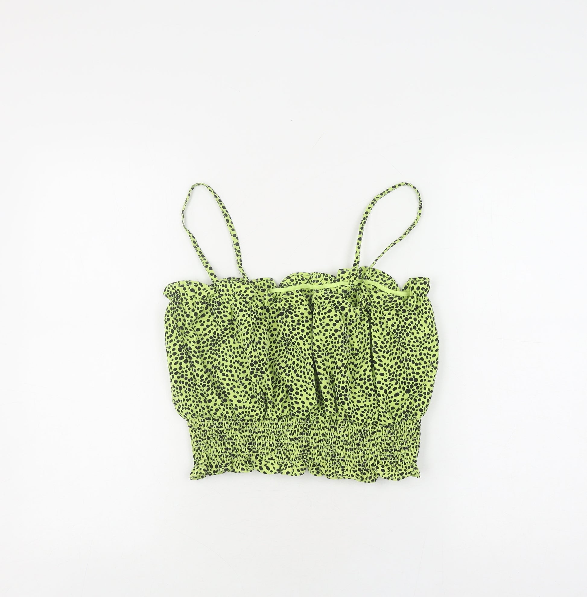 Elevate your summer wardrobe with this stunning camisole from Topshop. Designed for the modern woman, this tank top features a vibrant green hue adorned with an eye-catching animal print, perfect for making a bold fashion statement. The square neckline and spaghetti straps add a touch of elegance, making it versatile enough for both casual outings and chic gatherings. Crafted from 100% polyester, the lightweight fabric ensures you stay comfortable during those warm summer days. Its regular fit and sleeveless design offer a relaxed yet flattering silhouette. Easy to care for, this top is machine washable, making it both stylish and practical. Ideal for a casual occasion, pair it with your favourite jeans or a flowy skirt for a complete look. Whether you're heading to a brunch or a beach party, this Topshop camisole is your go-to choice for an effortlessly stylish appearance.
