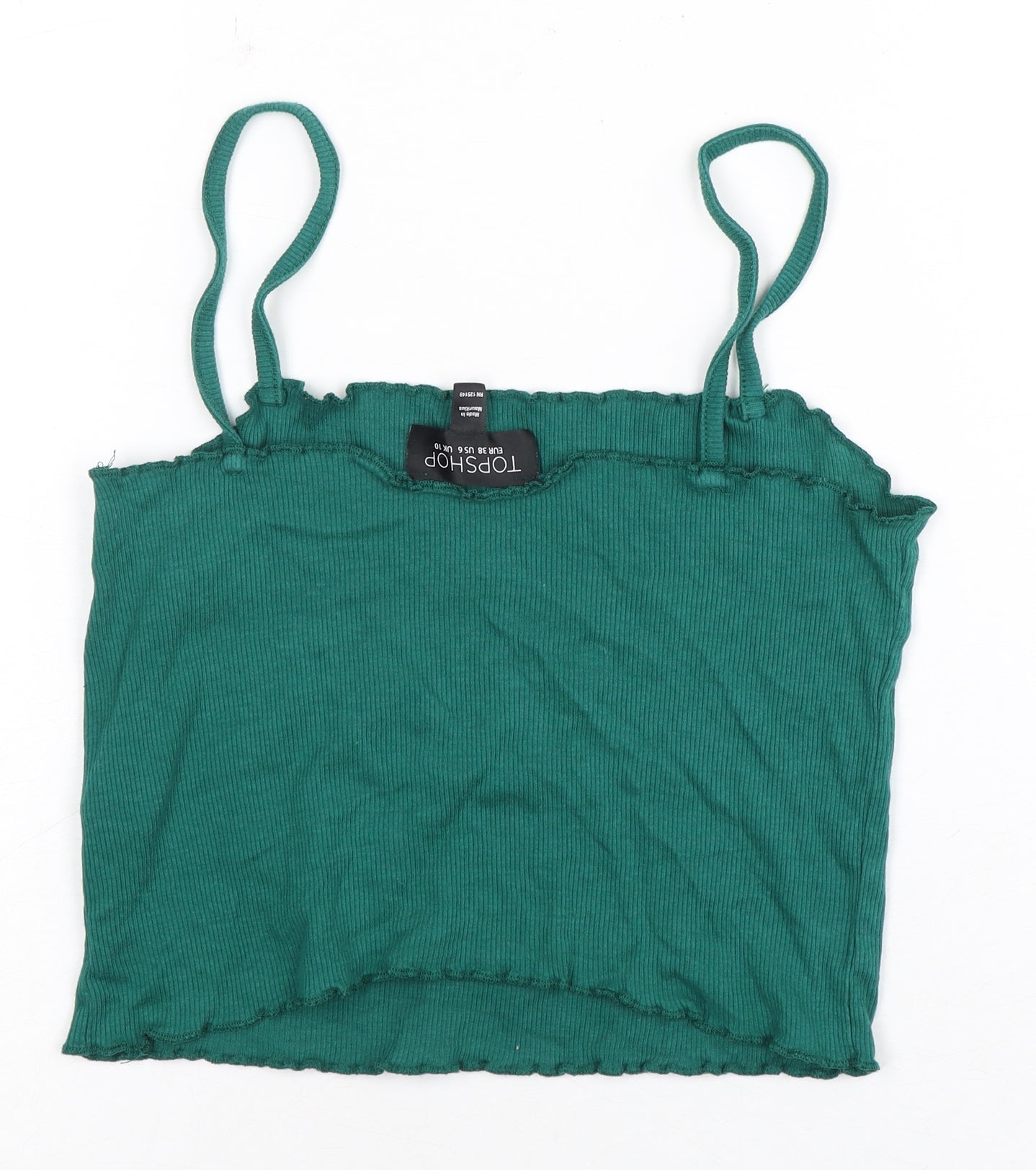 Elevate your wardrobe with this chic Topshop Women's Camisole Tank in a stunning green shade, perfect for adding a pop of colour to your spring and summer collection. Designed for women, this tank top is tailored in size 10, ensuring a regular fit that complements your figure while offering maximum comfort. Crafted from a fine blend of cotton and elastane, its soft jersey fabric provides a breathable and stretchy fit, making it ideal for casual outings or lounging around. The spaghetti straps offer a stylish touch, allowing you to pair it with a variety of bottoms from jeans to skirts for a versatile look. The solid pattern enhances its allure, making it a must-have for every fashion-forward woman. Embrace effortless style and comfort with this exquisite piece. Perfect for casual occasions, this camisole invites you to express your individual style effortlessly.