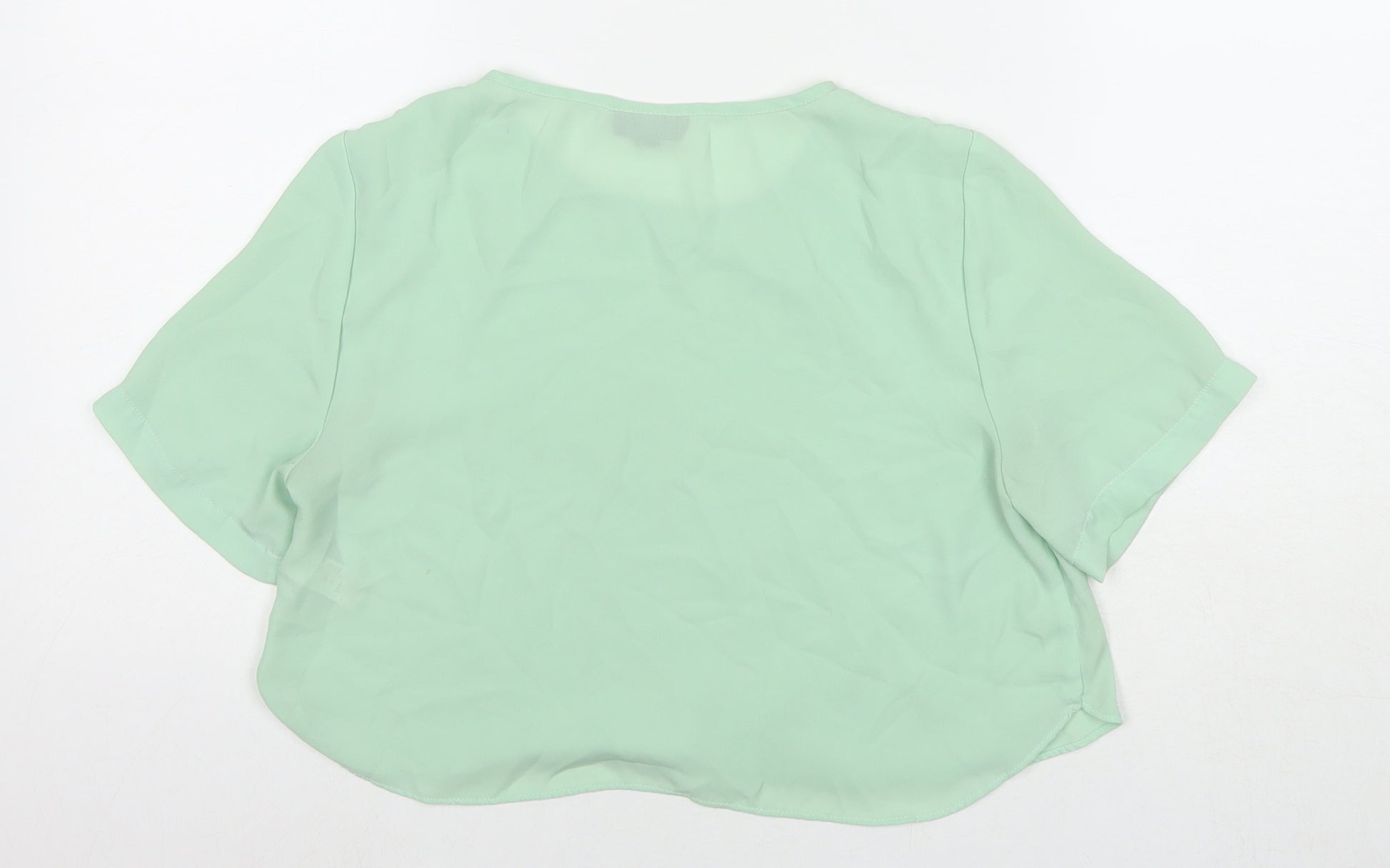 Womens Green Polyester Basic T-Shirt Size 8 Round Neck