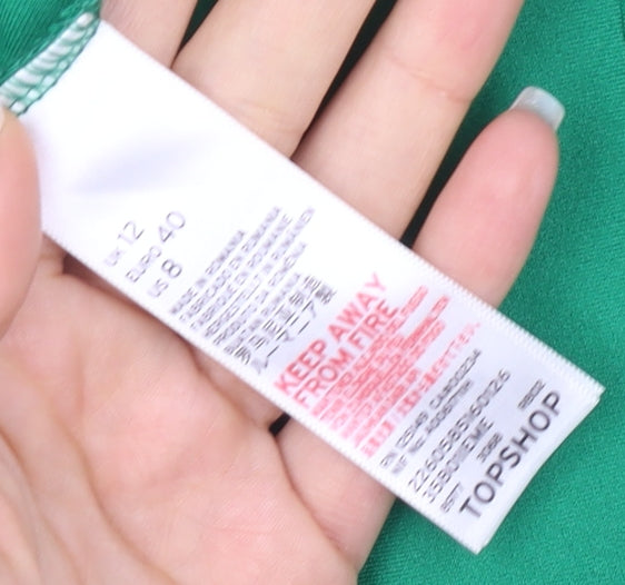 Explore your elegant side with this stunning Topshop sheath dress, a perfect choice for any cocktail or party event. Crafted in a lovely shade of green, it brings a fresh and vibrant touch to your wardrobe. This knee-length dress is designed for a comfortable and chic fit, enhanced by its short sleeves and high neckline, offering an elegant silhouette. Made from 97% polyester and 3% elastane, the fabric provides a touch of stretch, ensuring both comfort and a flattering figure. This dress is perfect for spring and summer occasions. Its classic style and machine-washable fabric make it easy to care for and maintain. Although in very good condition with a few slight marks on the back, this piece remains a beautiful and stylish addition to your collection. Ideal for women seeking a blend of modern fashion with a hint of sophistication.