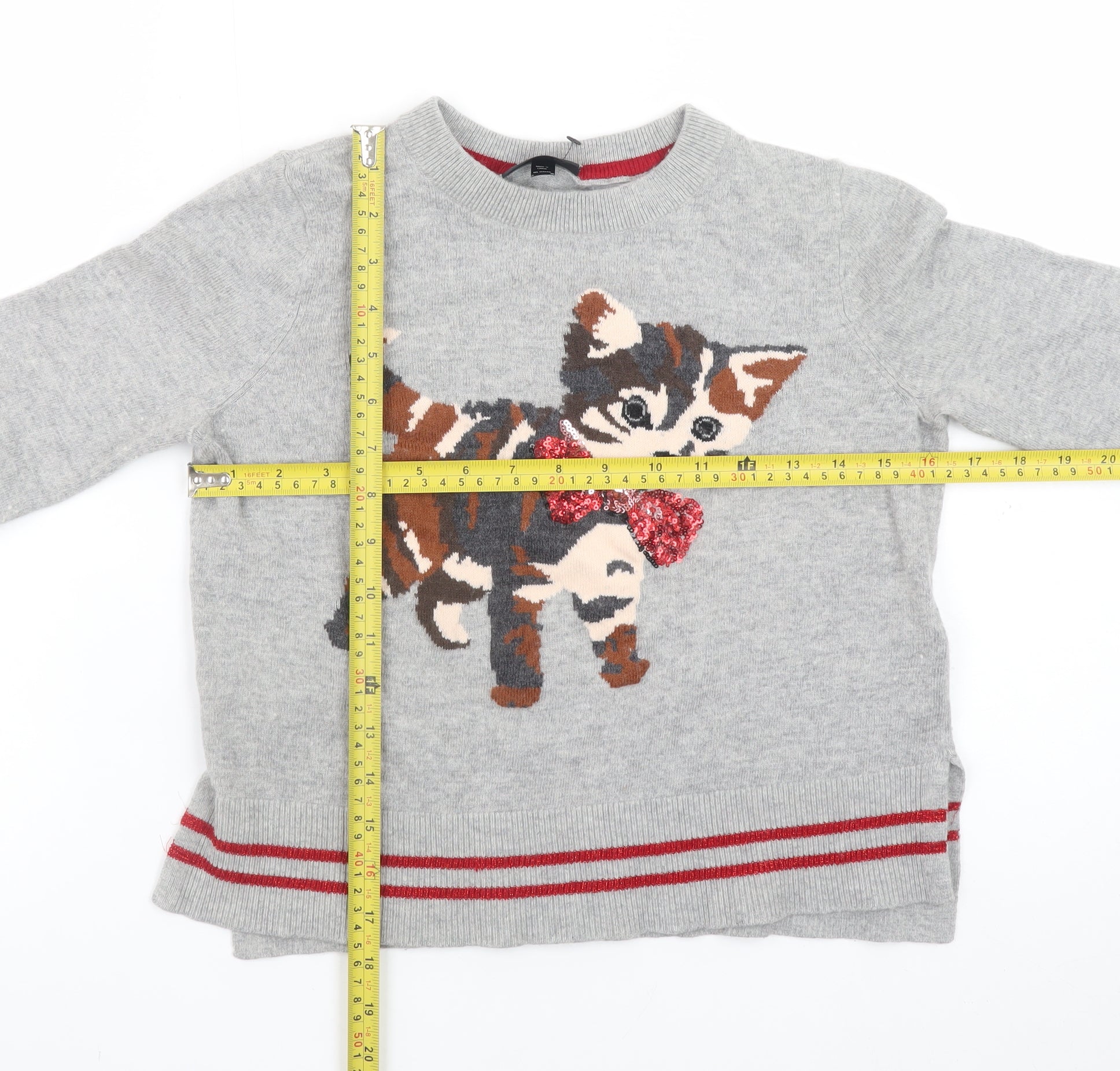 Womens Grey Cat Sequin Jumper Size 8 Long Sleeve Knit Pullover