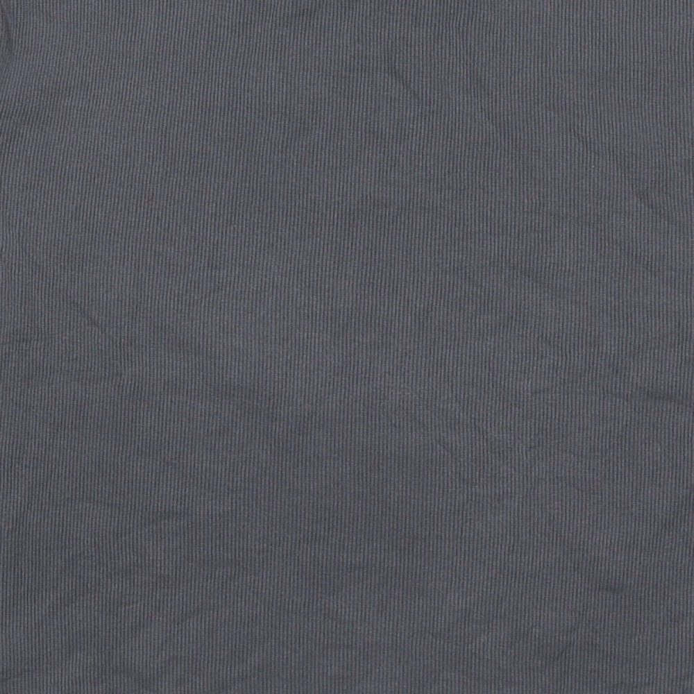 Womens Grey Cotton Basic T-Shirt Size 12 Mock Neck - Ribbed